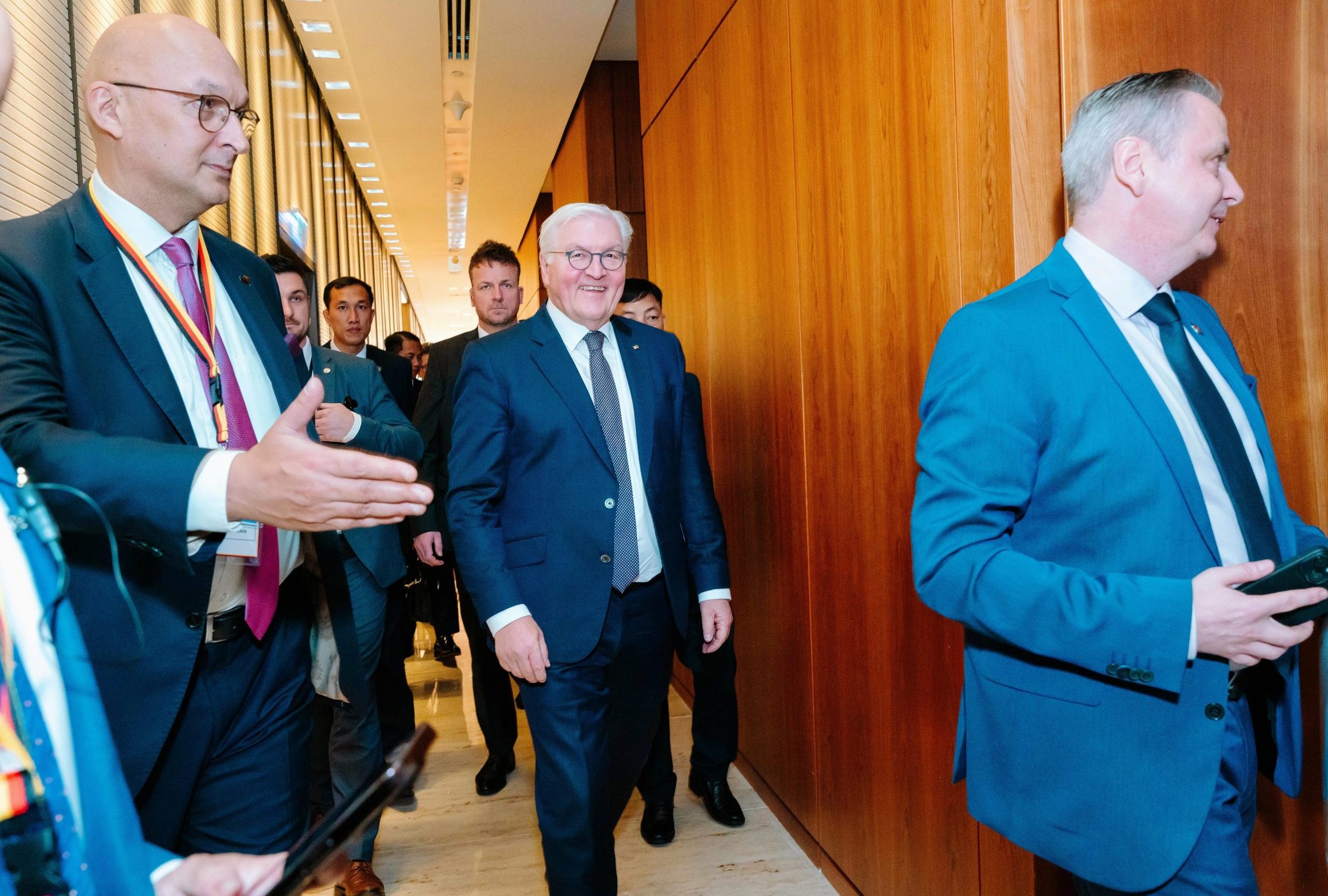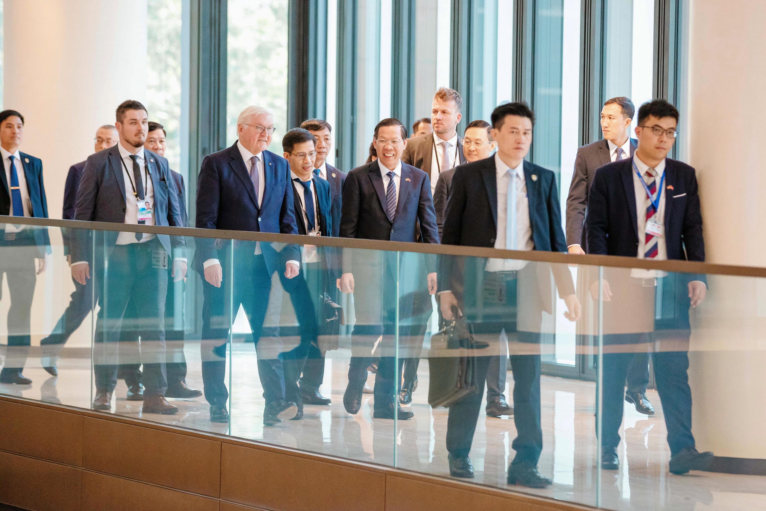 The chairman of the Ho Chi Minh City People’s Committee Mr. Phan Van Mai and the event hosts cordially welcomed President Steinmeier and his delegates at the Deutsches Haus Ho Chi Minh City – a symbol of the strategic partnership and friendship between Germany and Vietnam.