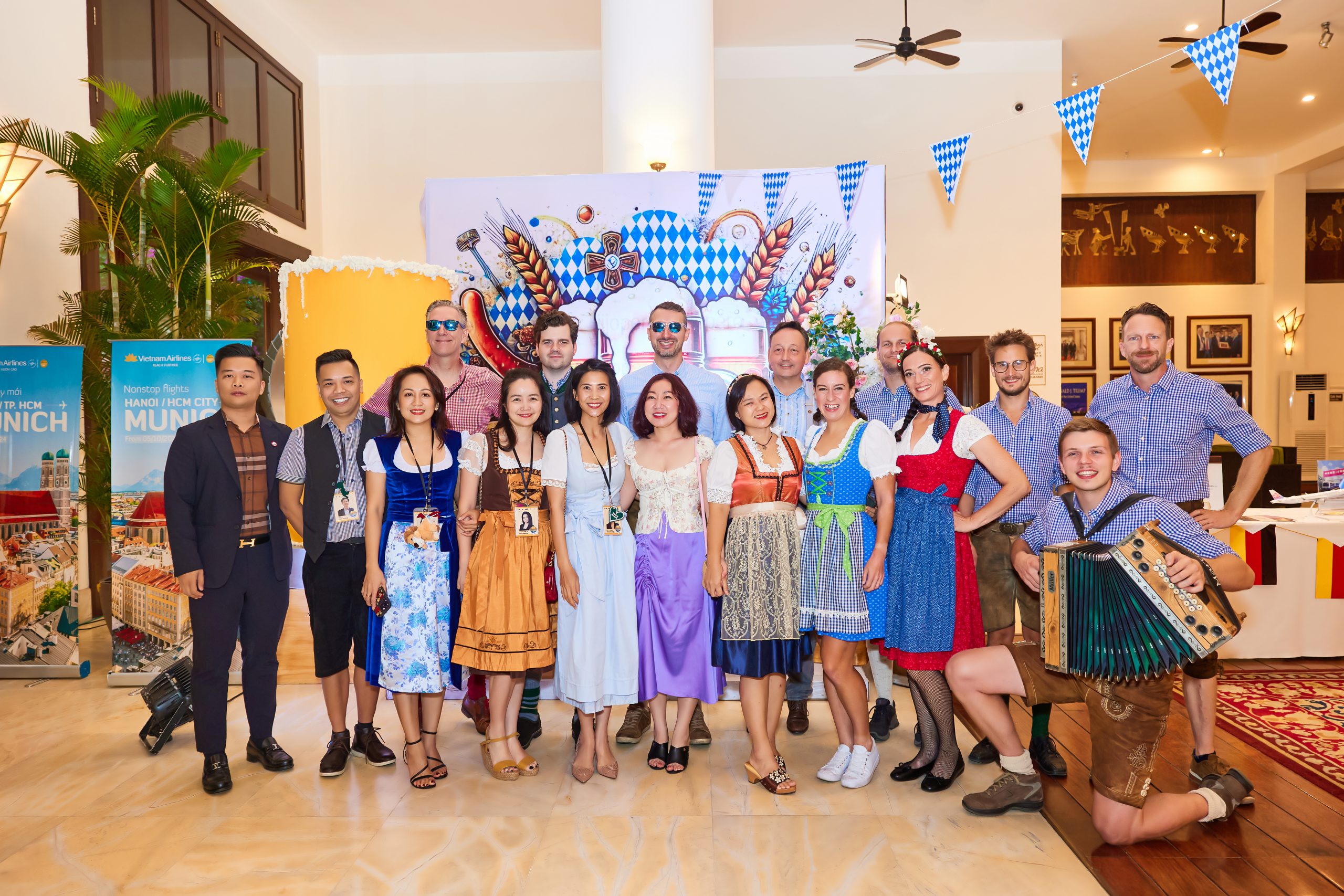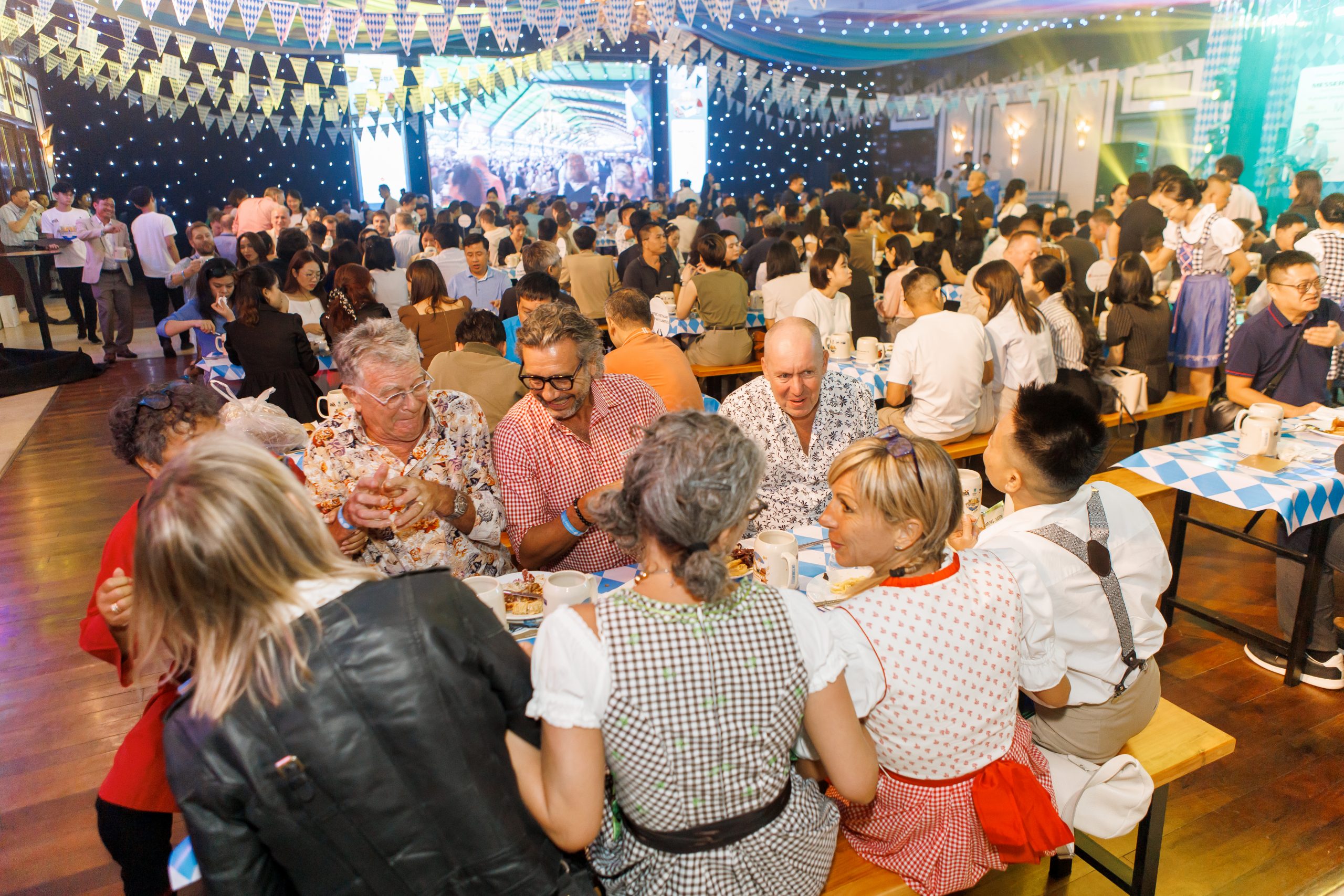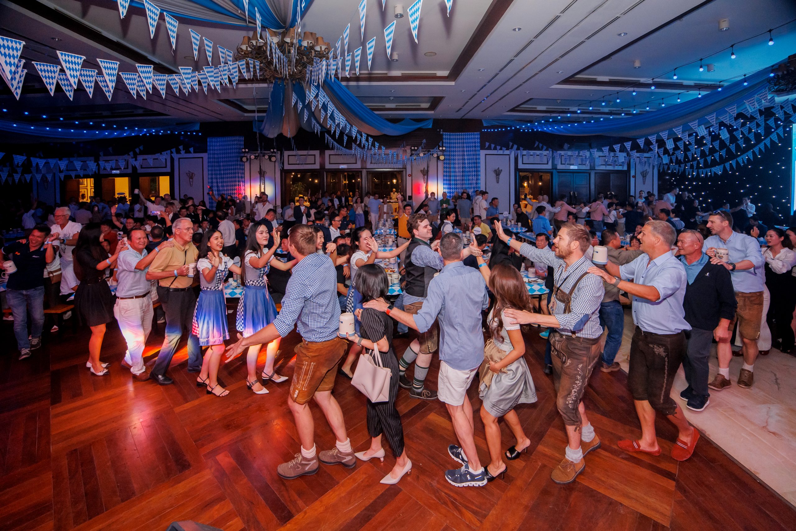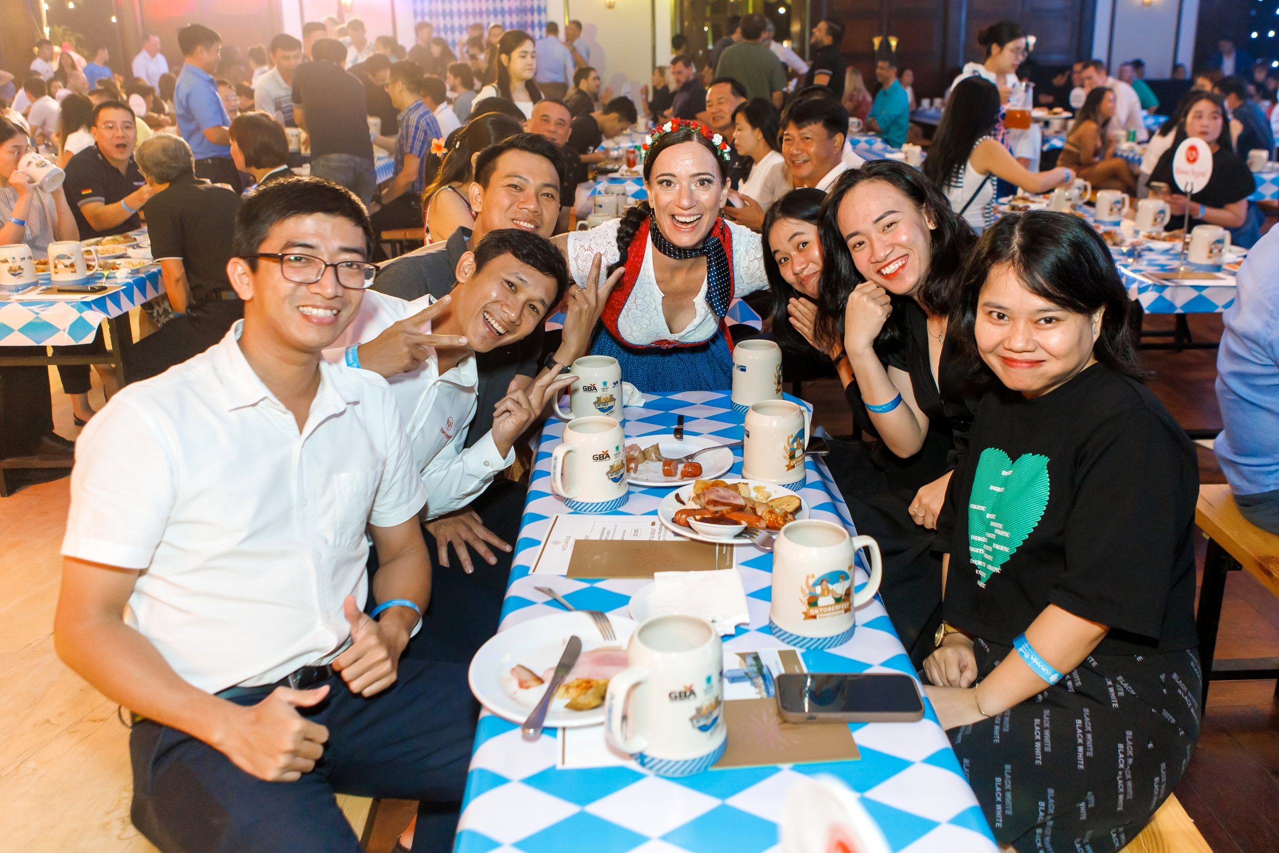 Attendees enjoyed a lively Bavarian atmosphere with performances by the O’zapft band, various entertainment activities, and distinctive German cuisine, especially premium German craft beer.