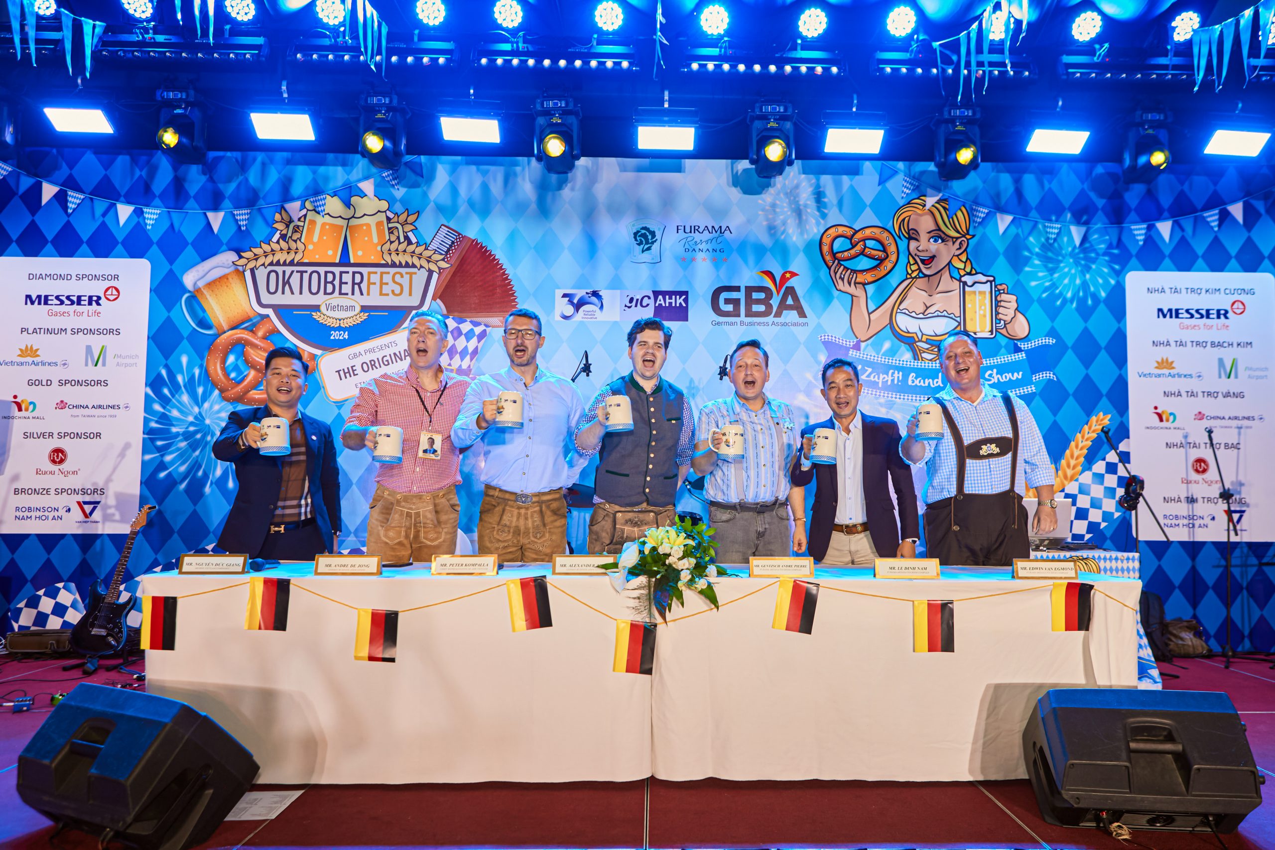 Other esteemed guests included Chief Representative of AHK Vietnam Mr. Peter Kompalla, GBA Vice-Chairperson Ms. Minh Nguyen and Mr. Torben Minko, Oktoberfest’s Committee Mr. Andre de Jong together with our event partner Furama Resort Danang, General Manager Mr. Gentzsch Andre Pierre and the management team, as well as our Diamond sponsor Messer Vietnam.