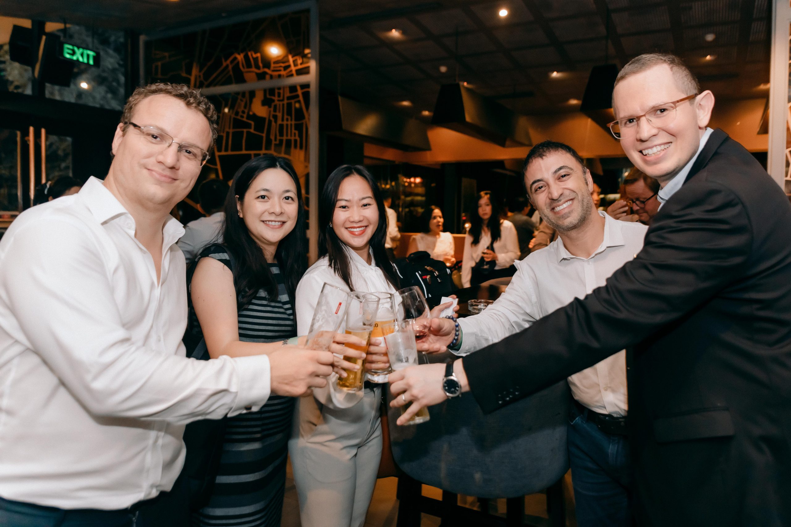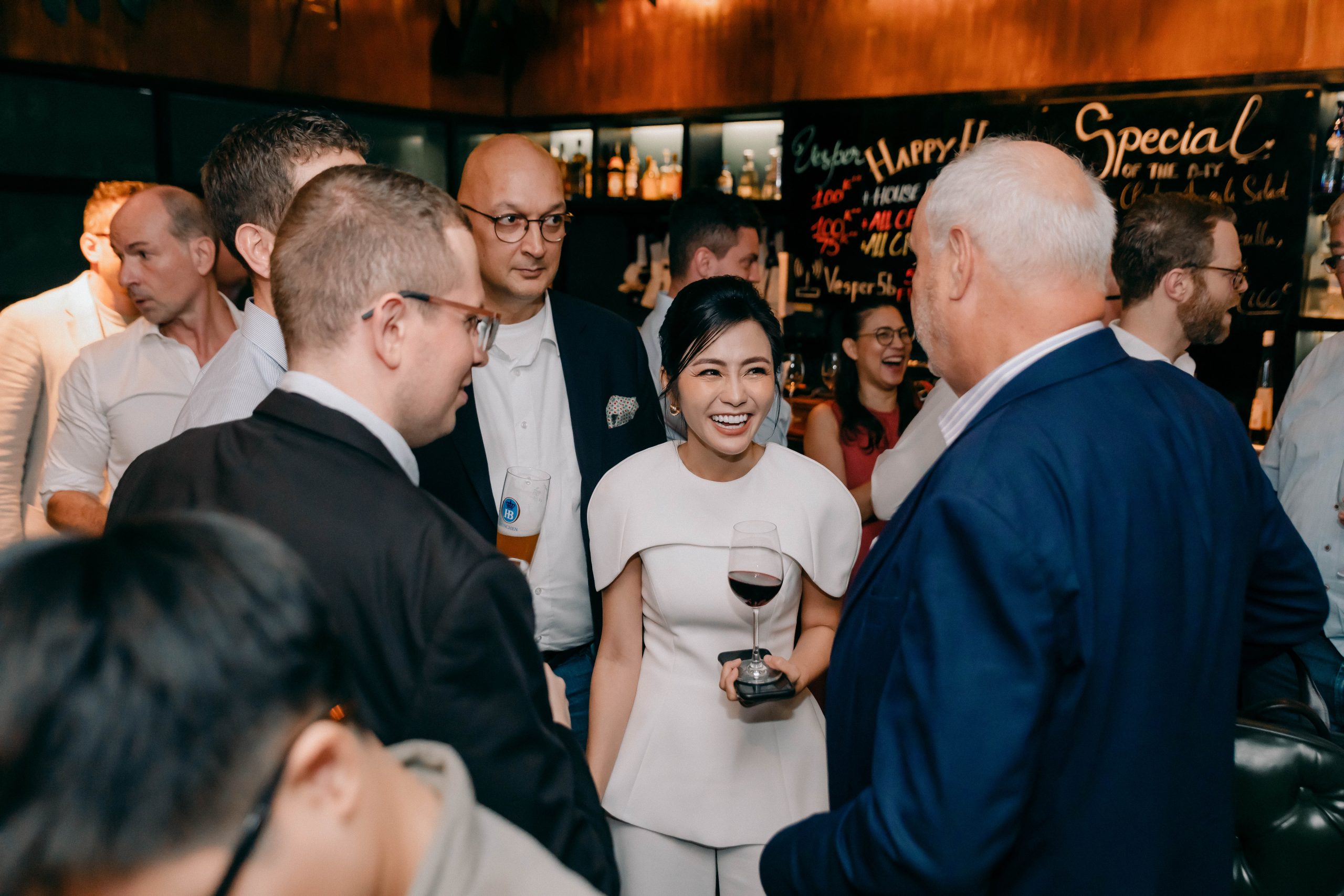 HCMC, Thursday, 22 September – A joyful networking night DeutschenTreff with lots of great conversation, engagement, and plenty of toasts throughout. It attracted around 60 members and friends to come join us in a cozy setting of Vesper Gourmet Lounge. Congratulations to our lucky draw winners for winning three cases of fine Bavarian beer Erdinger Weissbier.