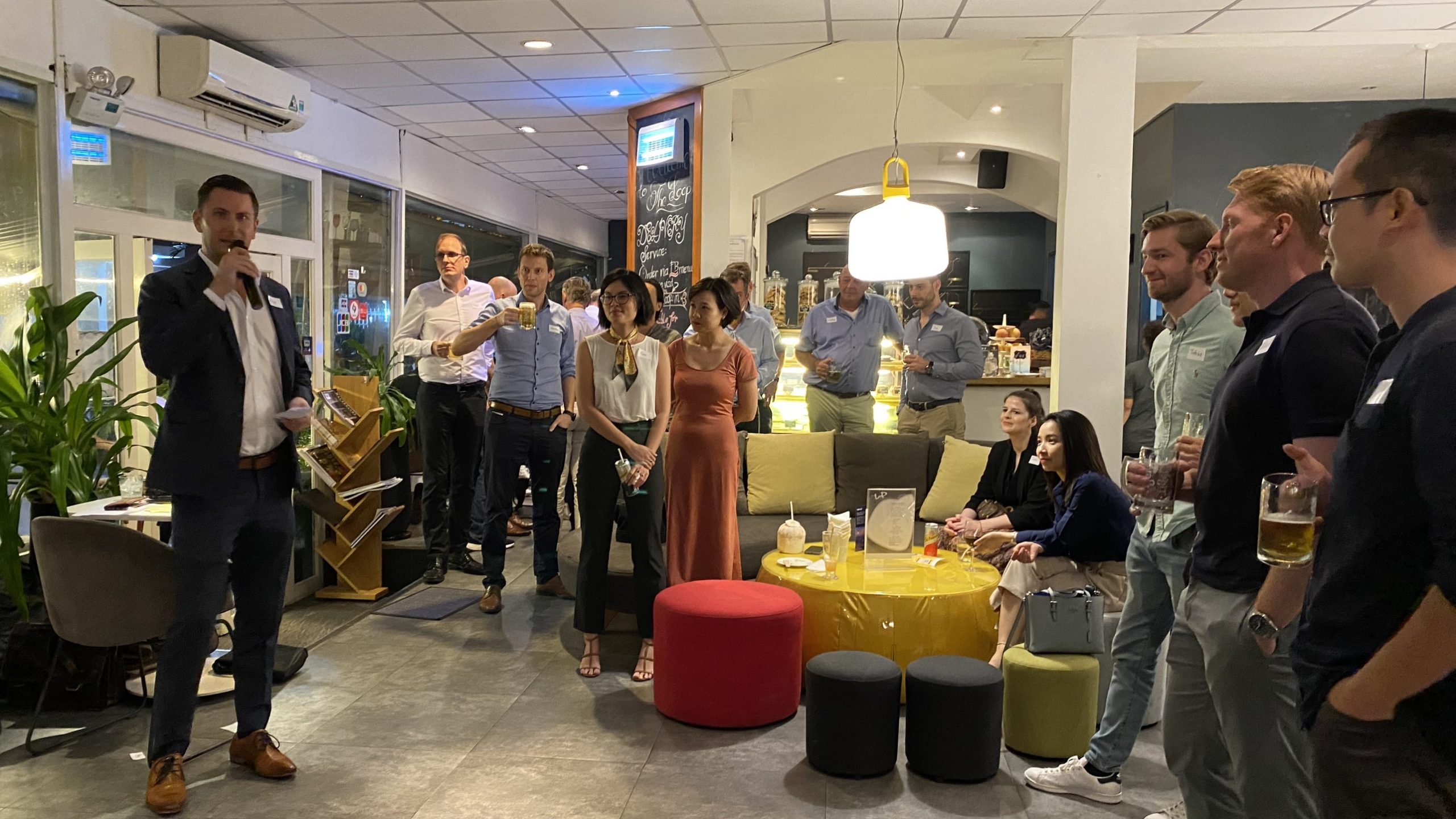 HCMC, Wednesday, 20 July – A joyful networking night DeutschenTreff with lots of great conversation, engagement, and plenty of toasts throughout. Walking through the door of The Loop restaurant, more than 80 members and friends were greeted by a relaxing ambience and atmosphere. It was an unforgettable night made even more unforgettable by your presence.