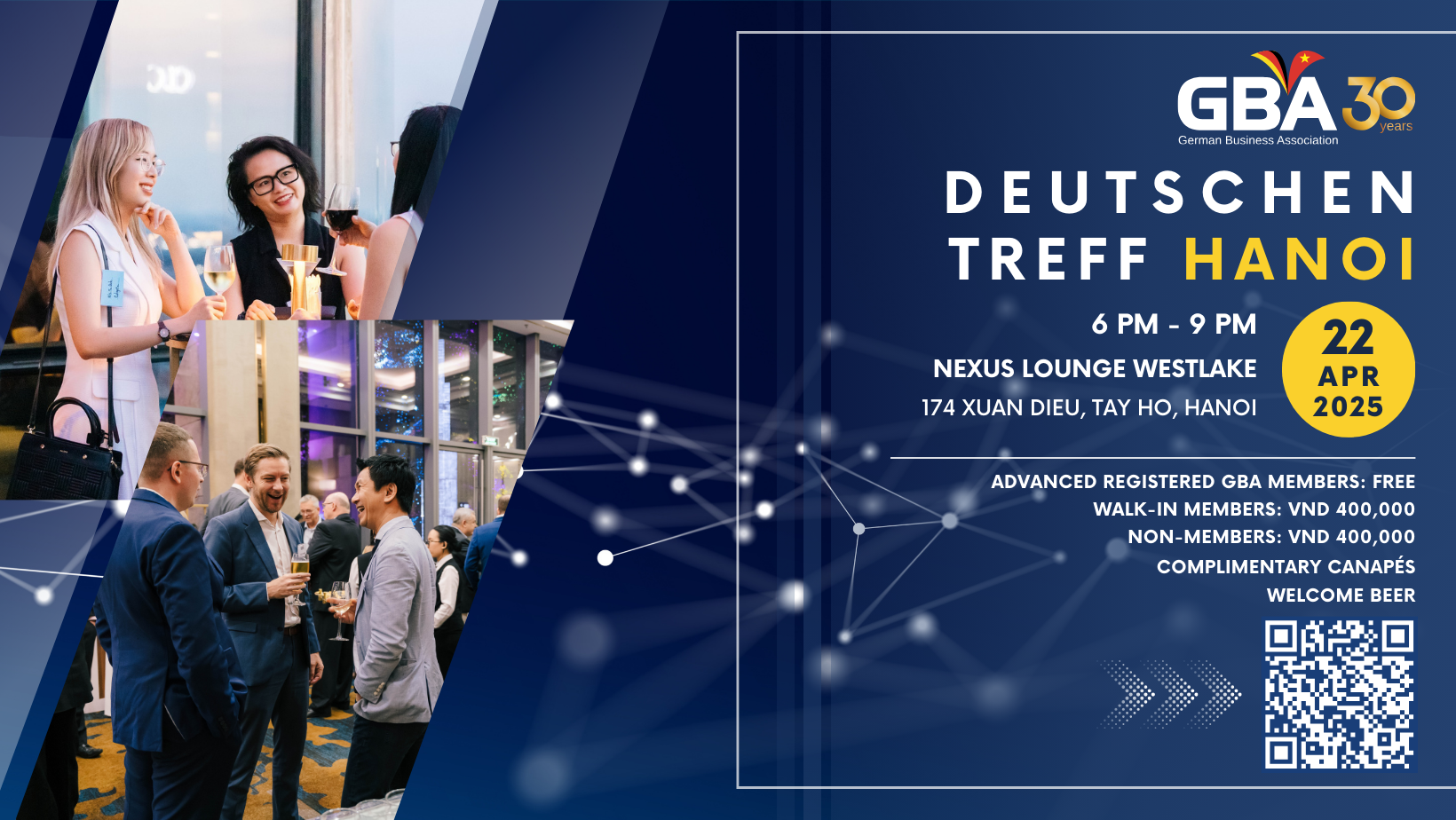 Join us for an exclusive networking event hosted by the German Business Association – GBA on Tuesday, April 22nd at Nexus Lounge Westlake Hanoi.