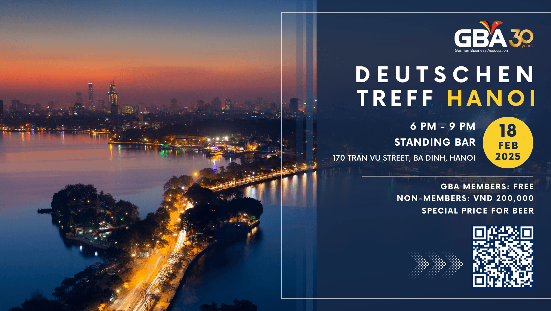 🔔Kick off 2025 with us at the first DeutschenTreff of the year in Hanoi, hosted by the German Business Association – GBA! This exclusive networking event is the perfect chance to grow your professional connections, catch up with colleagues, and meet potential business partners. Whether you are looking for new collaborations or just want to expand your network, don’t miss out on this fantastic opportunity to set the stage for a successful year ahead!