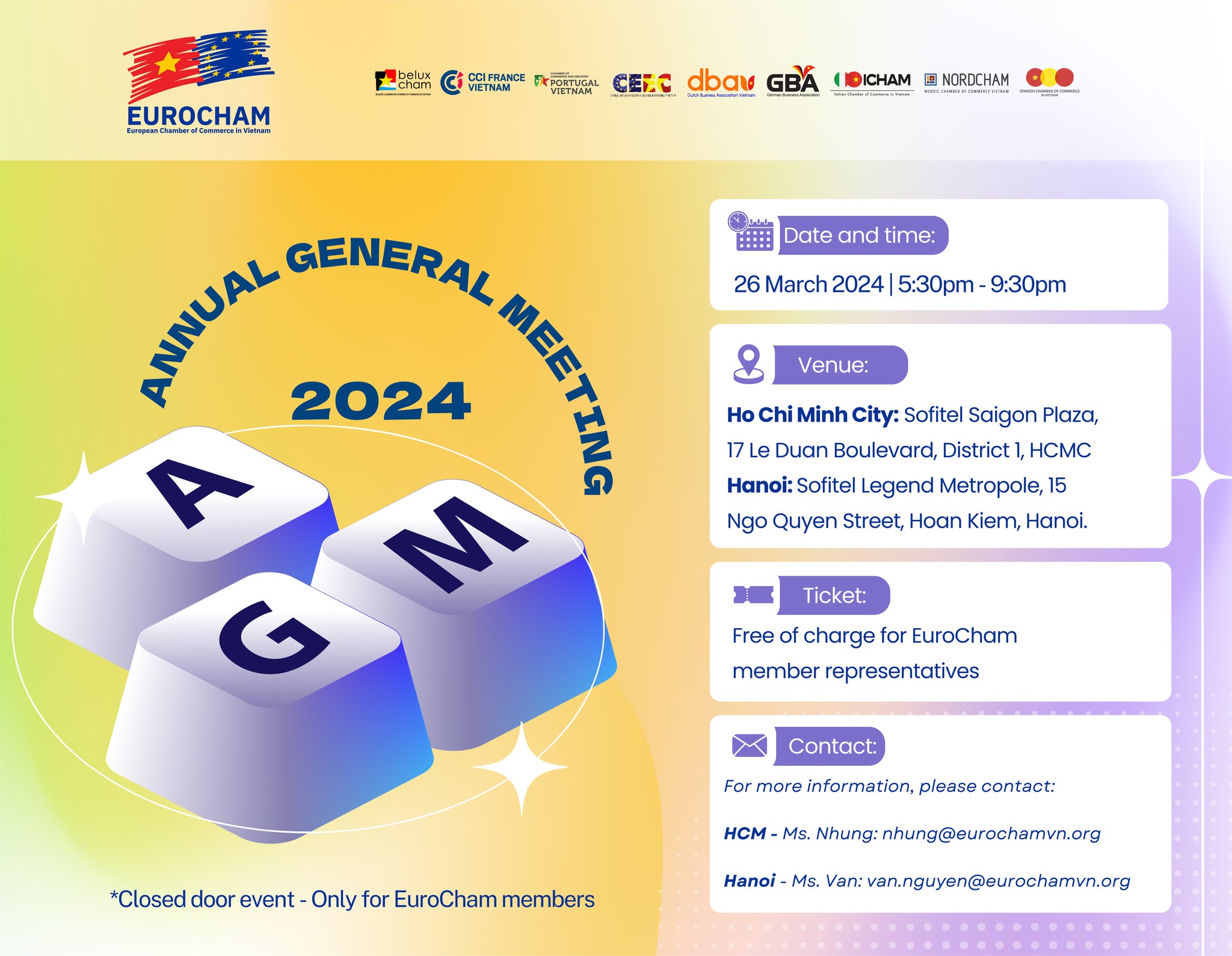 Mark your calendars for a fresh, interactive and exciting EuroCham Vietnam’s Annual General Meeting (AGM) 2024!