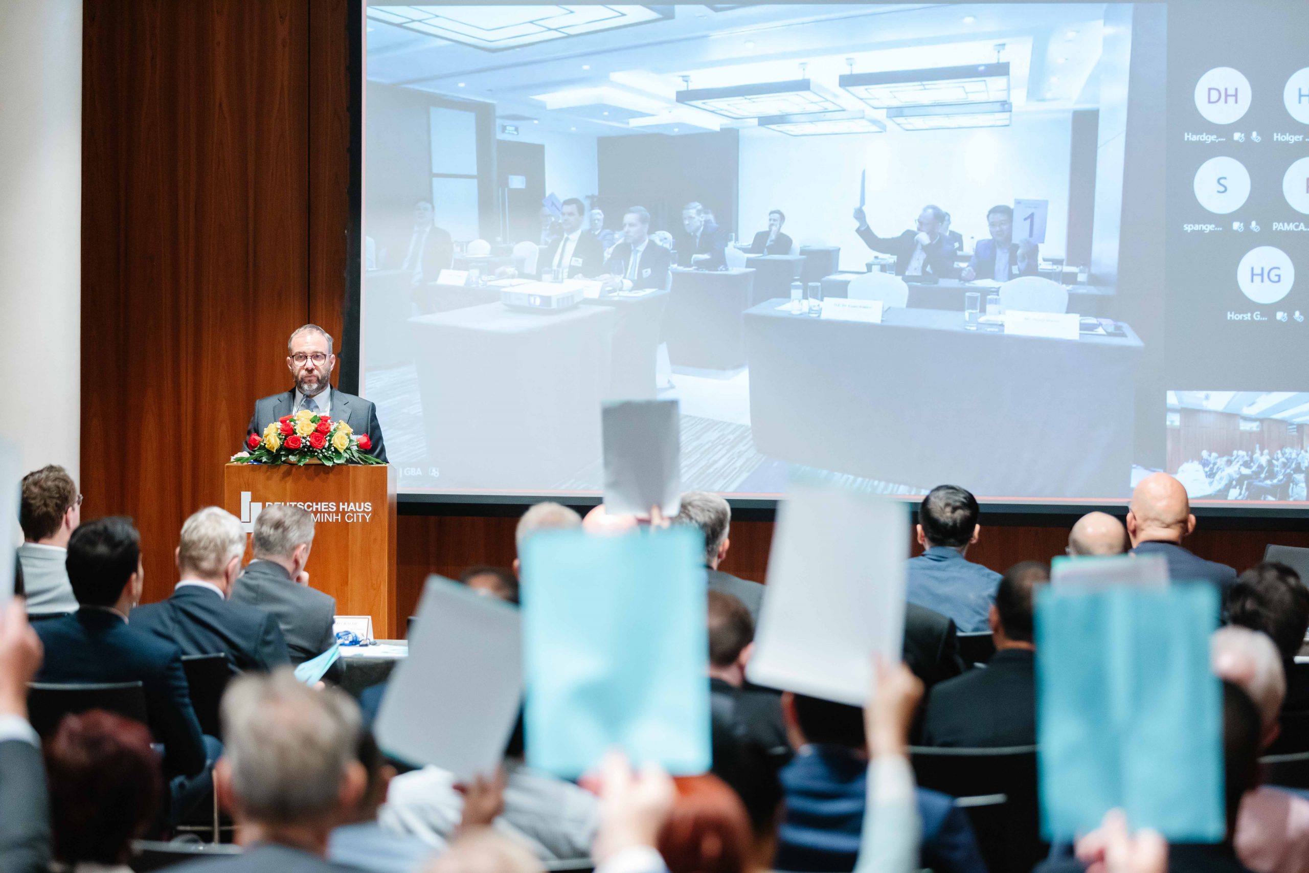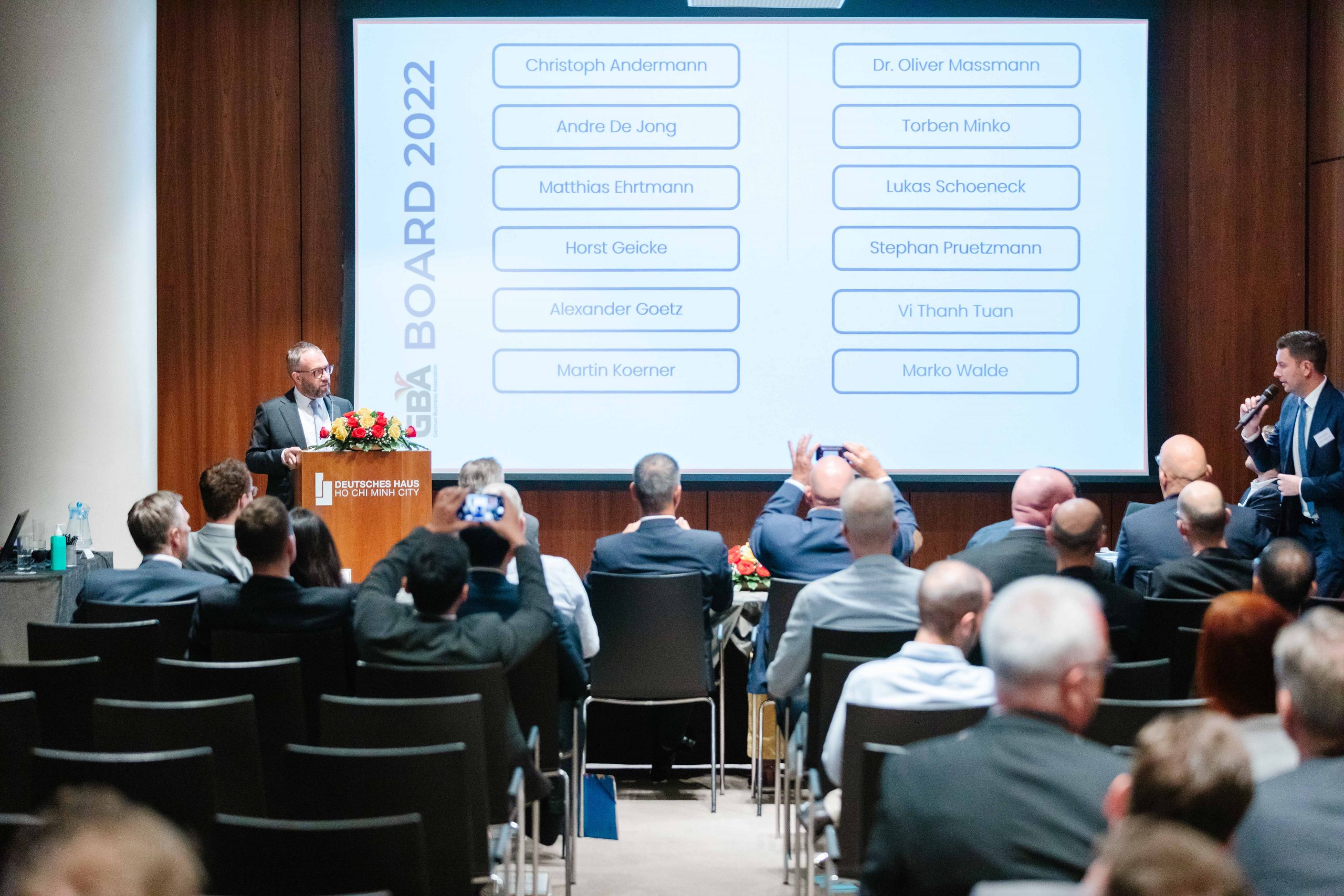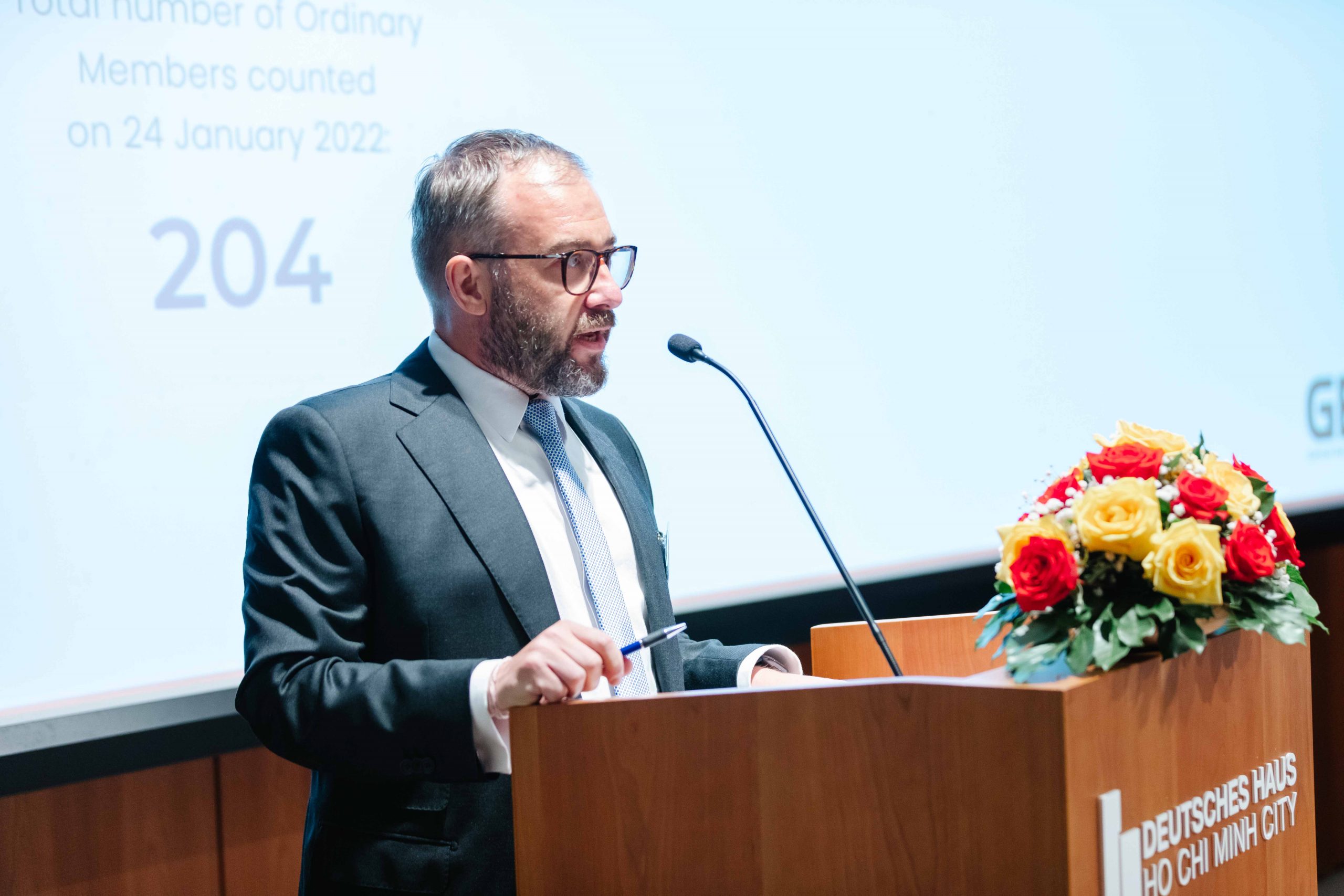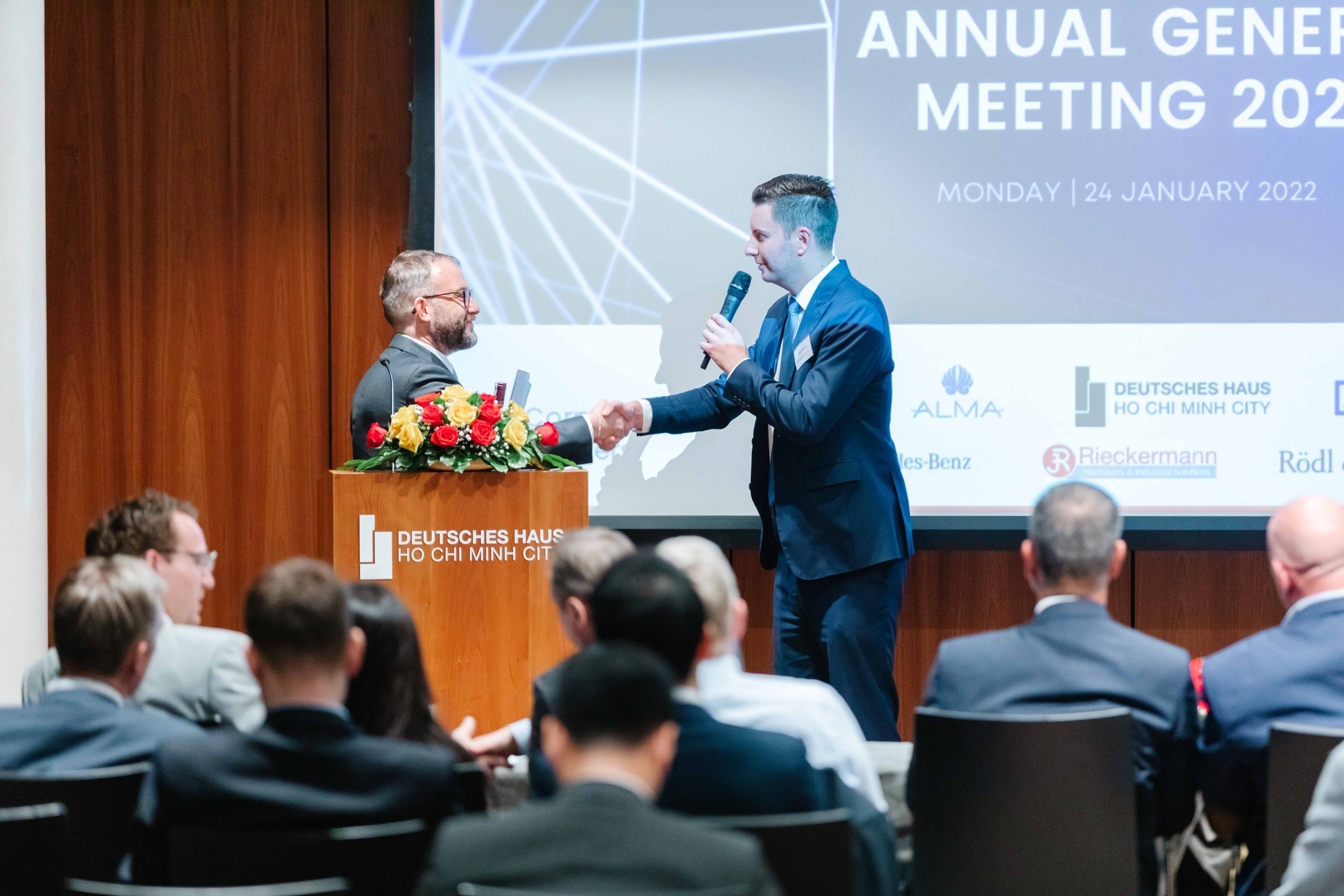 The AGM 2022 had the participation of more than 100 members, virtually and in person. We were honored to welcome the honorary guests from the German Embassy, the German Ambassador to Vietnam, H.E. Dr. Guido Hildner, and the Deputy Head of Mission, Head of Economic Section, Mr. Weert Boerner.