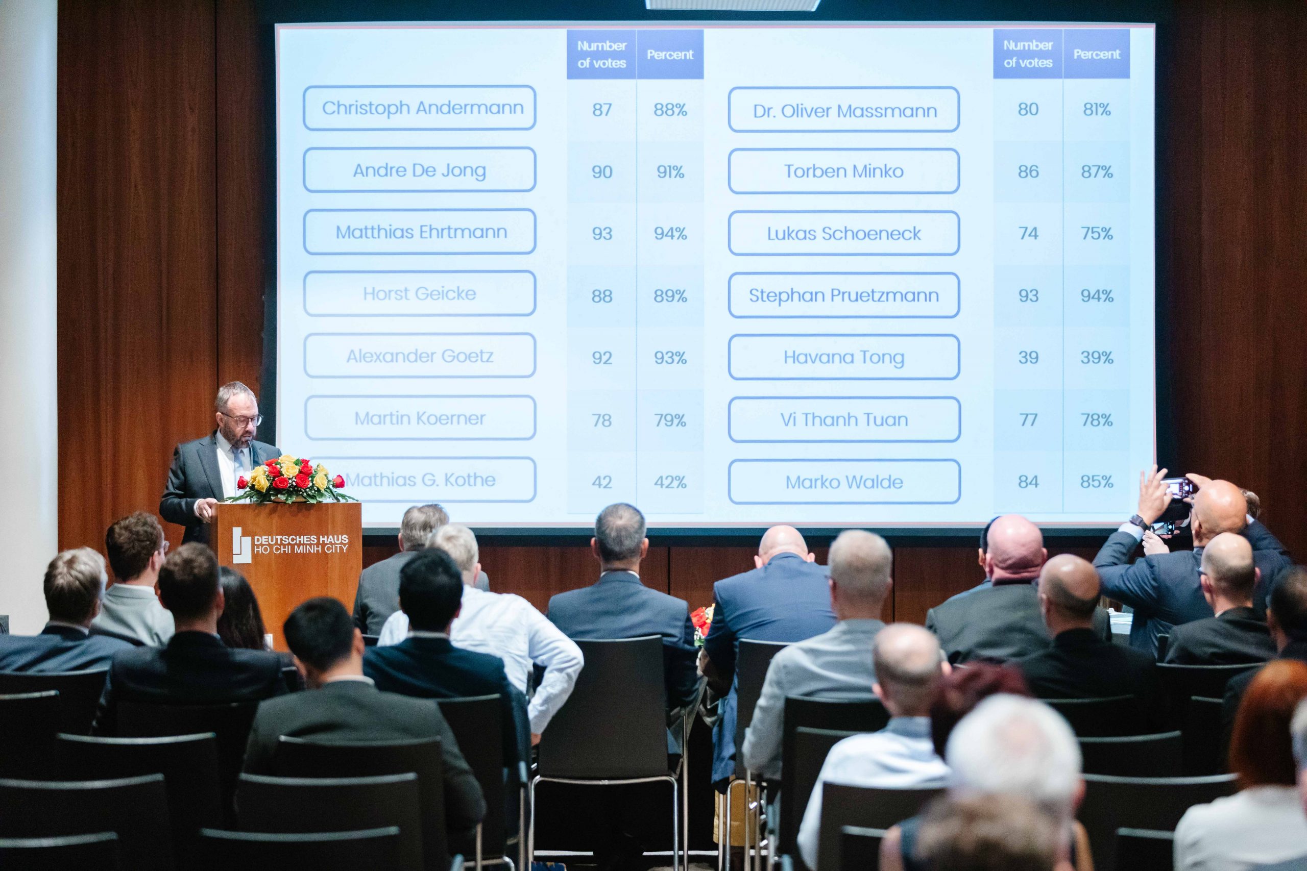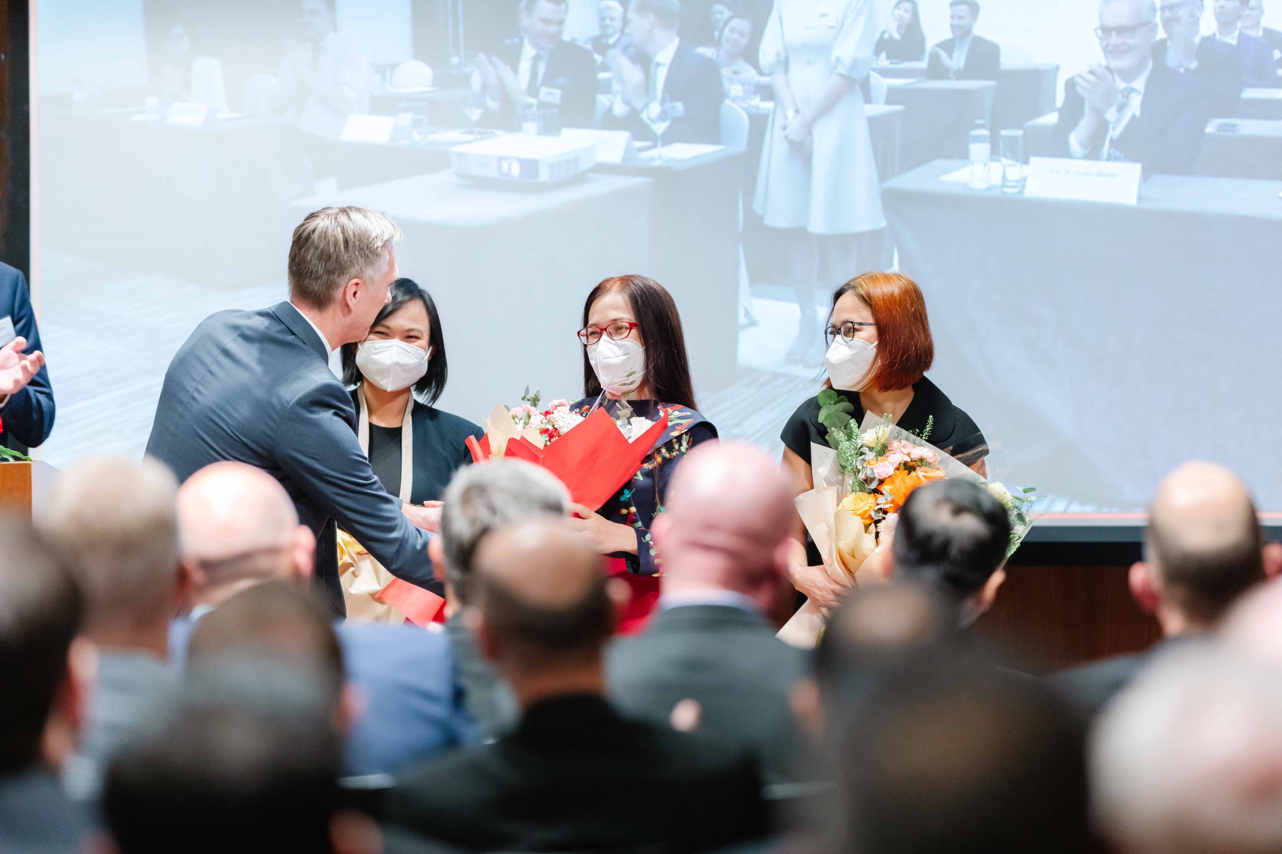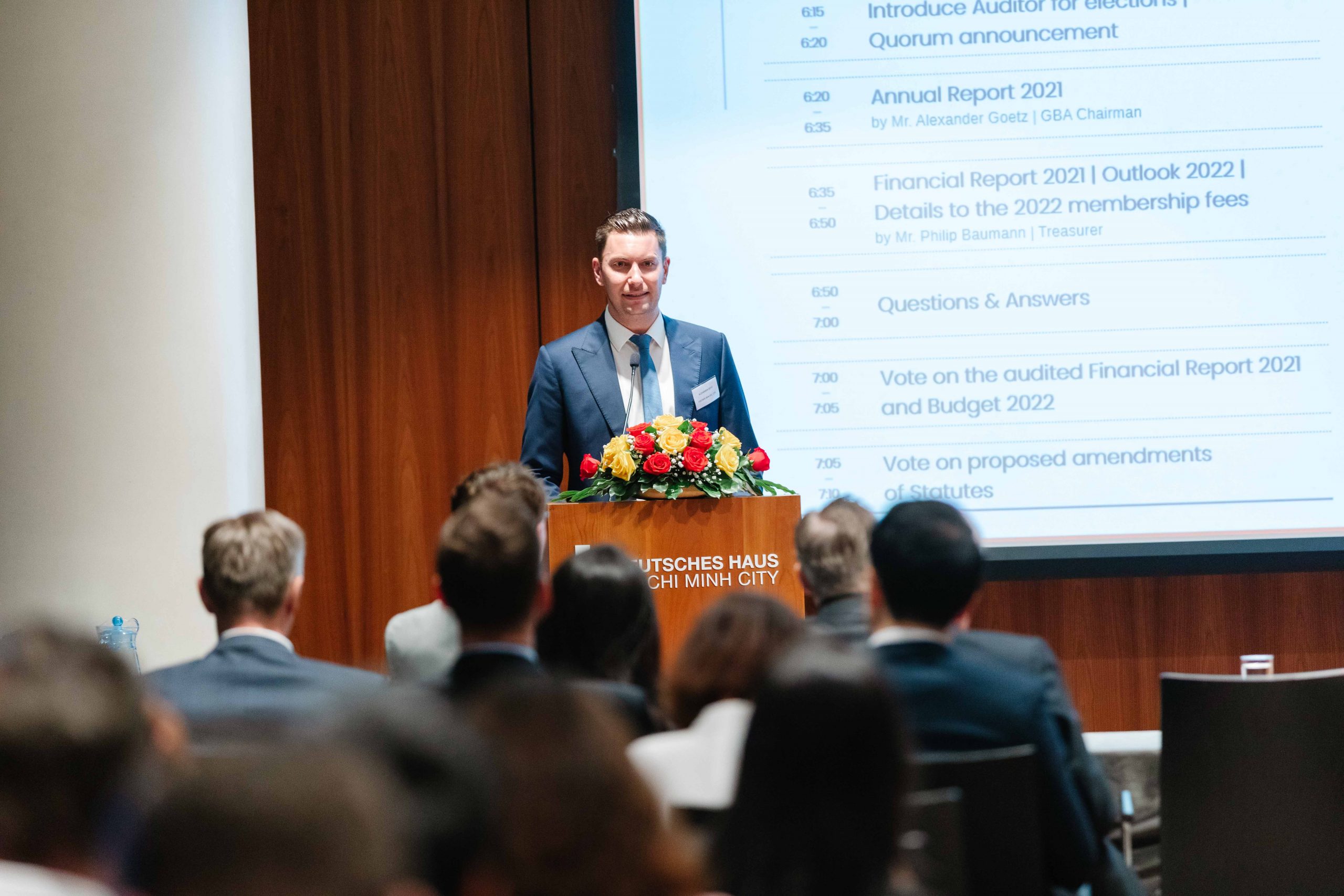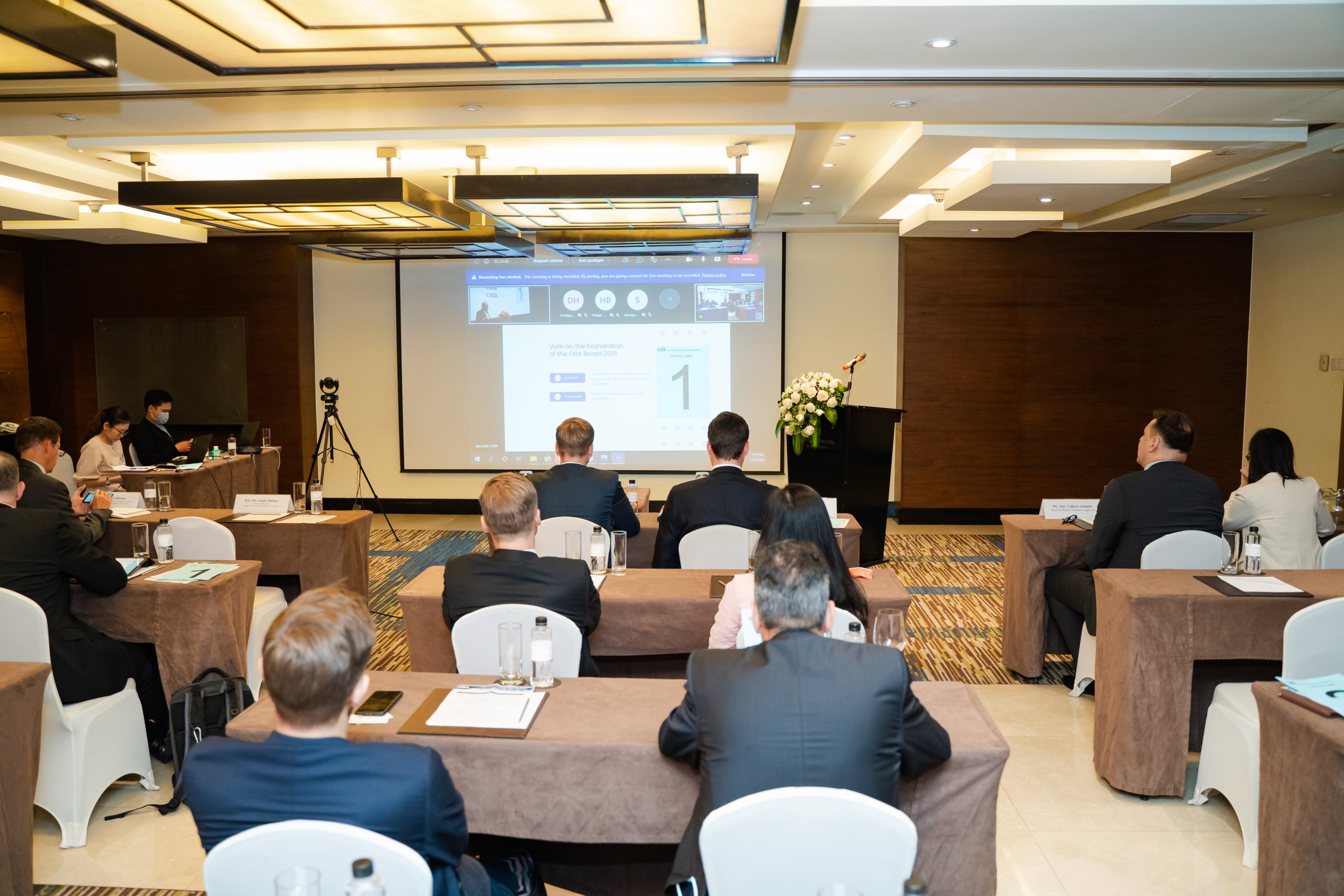 The AGM 2022 had the participation of more than 100 members, virtually and in person. We were honored to welcome the honorary guests from the German Embassy, the German Ambassador to Vietnam, H.E. Dr. Guido Hildner, and the Deputy Head of Mission, Head of Economic Section, Mr. Weert Boerner.