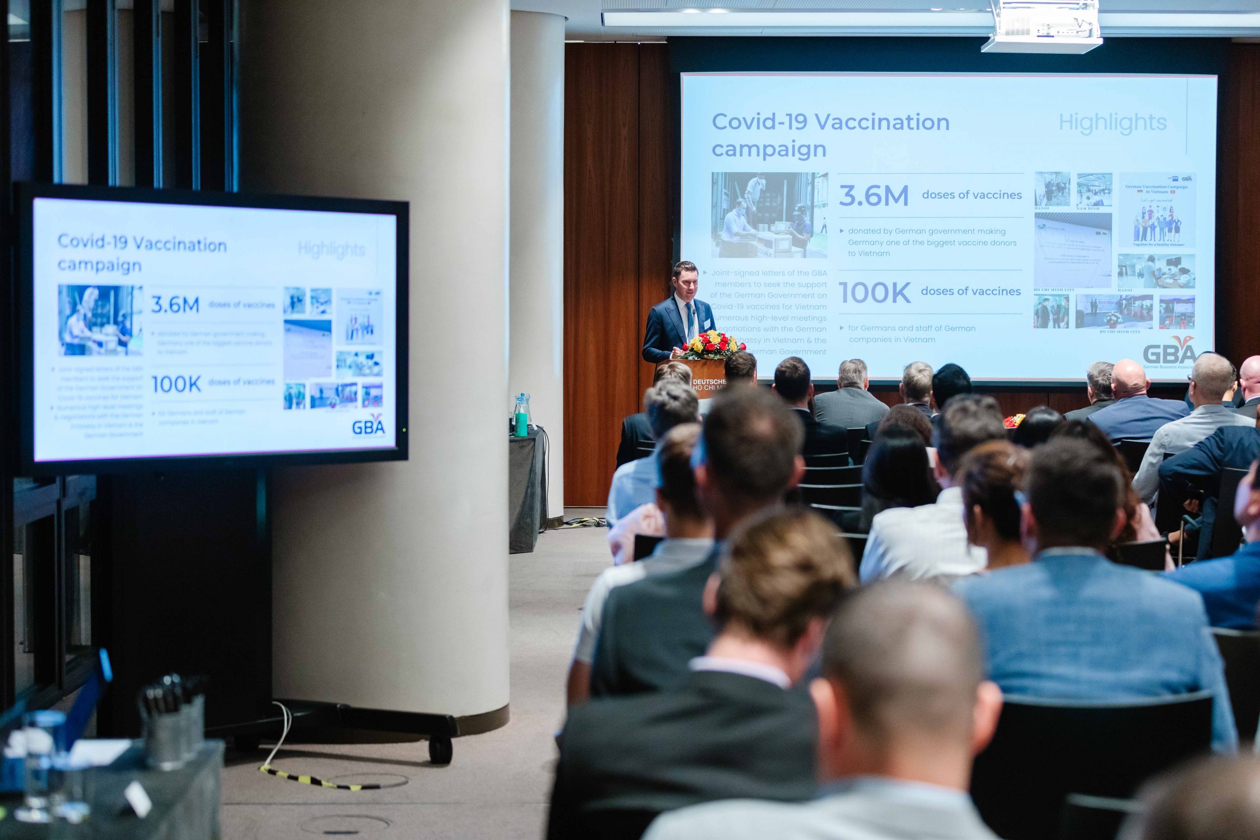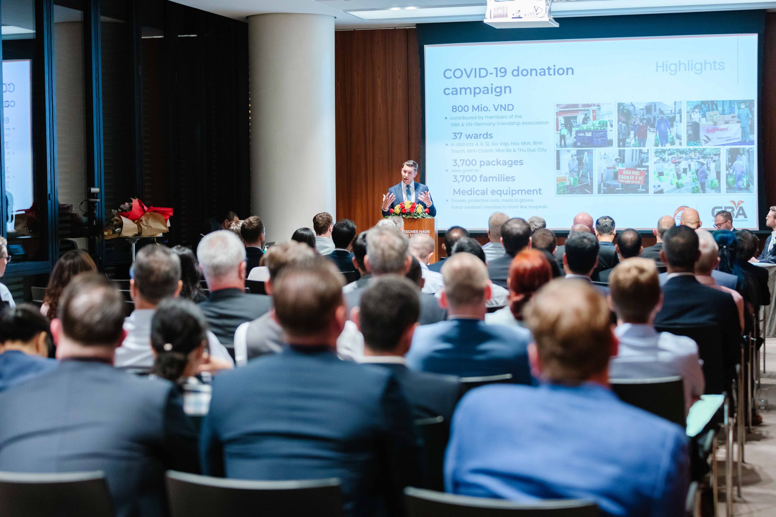 In his opening speech, Dr. Hildner highly appreciated the continuous contributions of the GBA to the promotion of trade and business partnerships between German and Vietnamese enterprises. He highlighted also the active contributions and effective cooperation with the German Embassy in the effort of seeking for support of German Government on Covid-19 vaccines for Vietnam, German and staff of German companies in Vietnam.