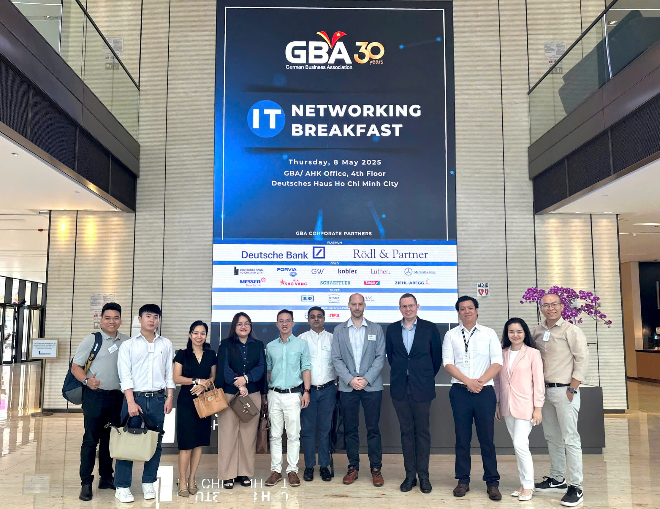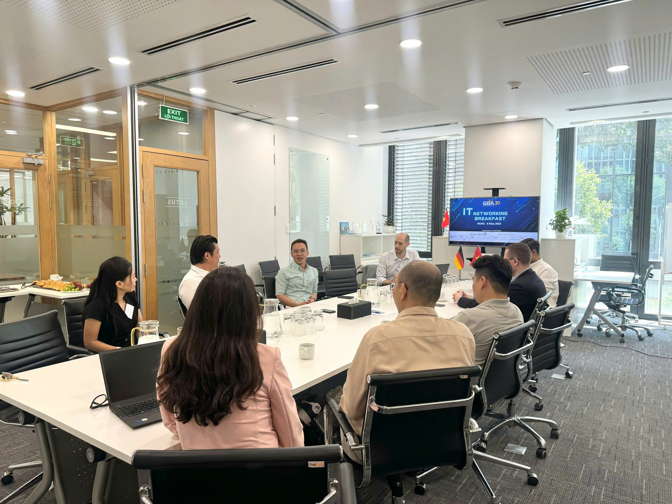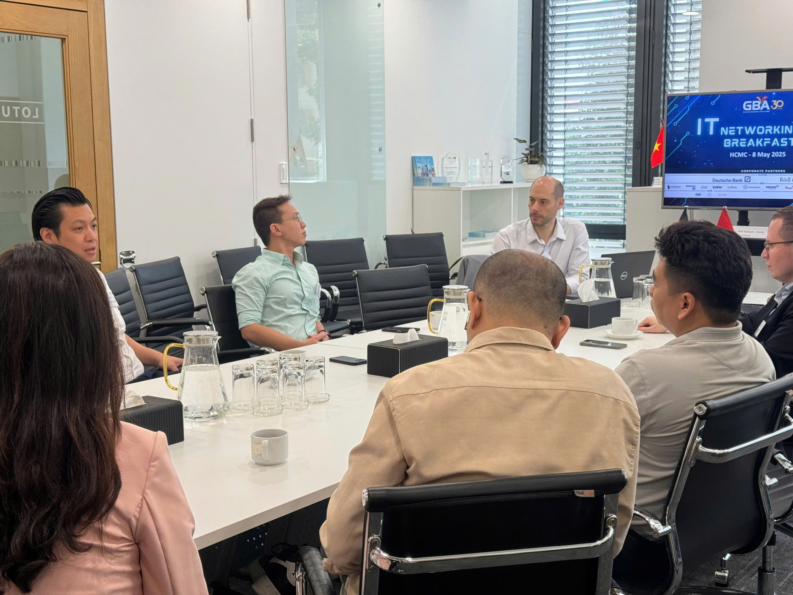 HCMC, May 8 – The German Business Association (GBA) successfully hosted an IT Networking Breakfast at Deutsches Haus Ho Chi Minh City, bringing together senior leaders from Vietnam’s tech sector for a morning of open dialogue, knowledge sharing, and meaningful networking. Participants included representatives from Bosch Vietnam, CBTW, Citek, CMC Global, FPT Software, NFQ, SGH Asia, and SPS Vietnam.