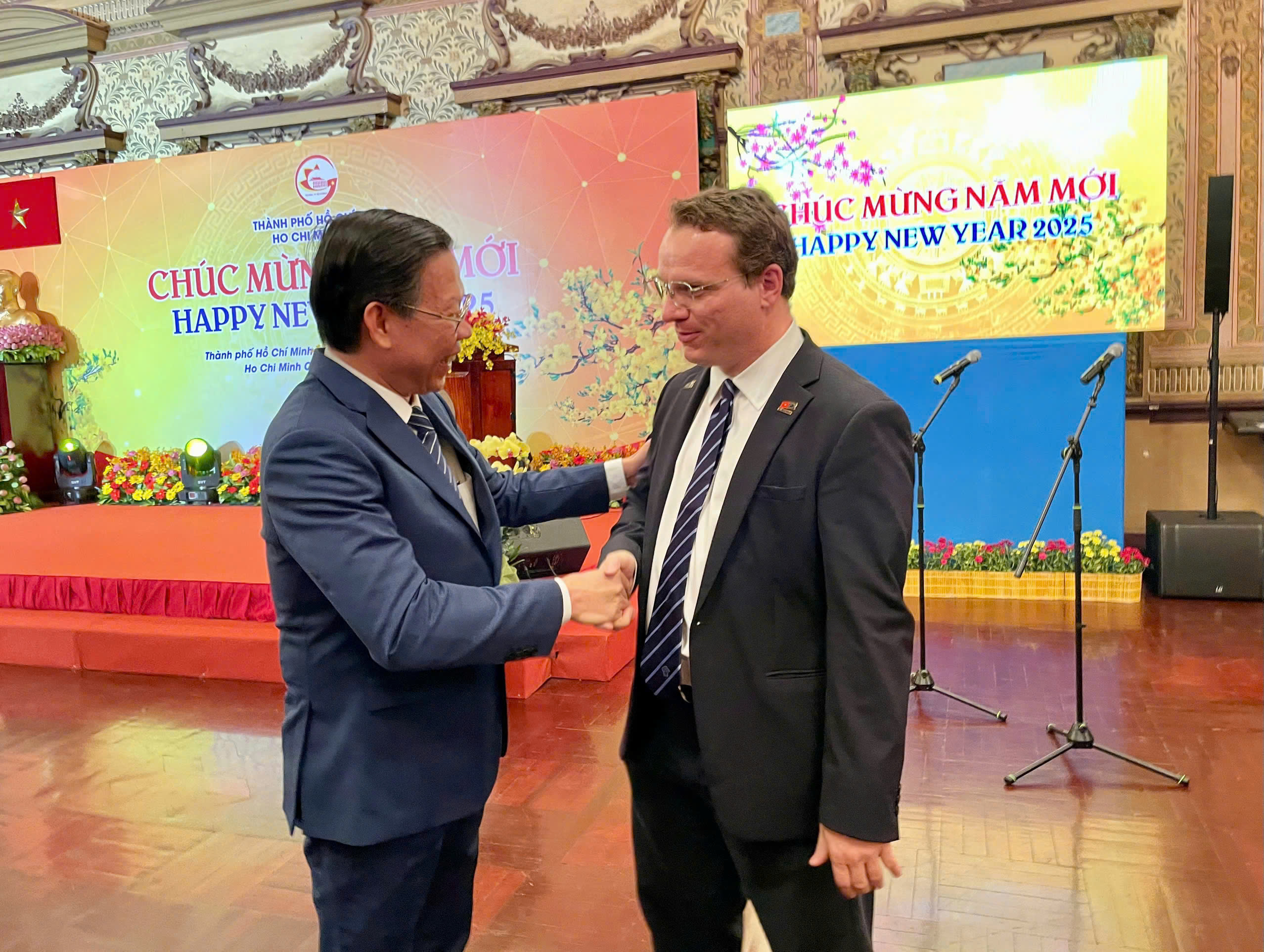HCMC, January 13 – GBA Vice-Chairman Mr. Martin Koerner represented German Business Association – GBA at the 2025 New Year reception hosted by the Ho Chi Minh City People’s Committee. German Consul Dr. Josephine Wallat, Deputy Consul General Mr. Christopher Scholl, and other counterparts also joined.