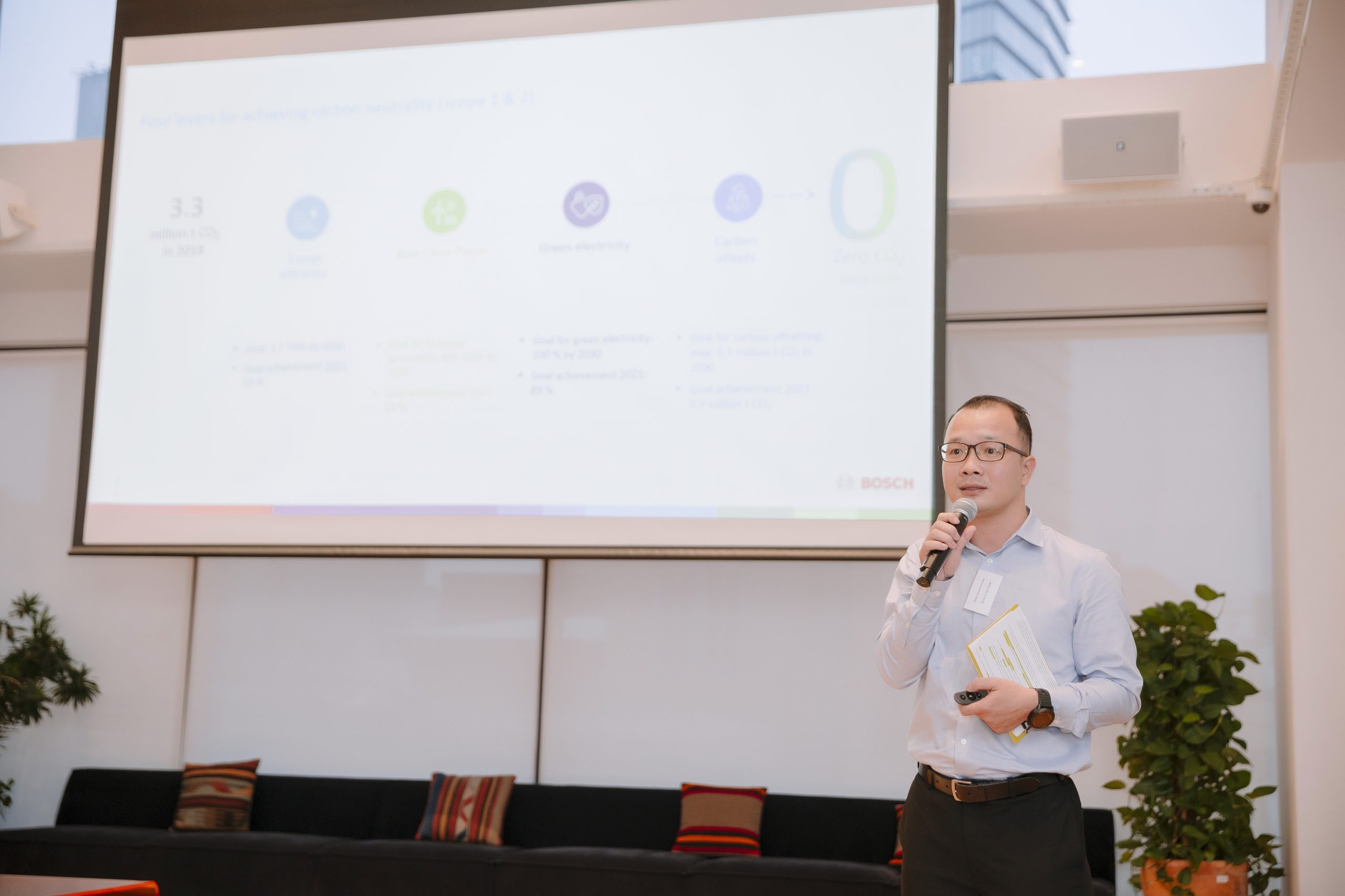 (2) Click here >>> for the presentation deck “Embracing Sustainability – The Bosch Journey to CO2 Neutrality by 2020” by Tran Quang Hung, Head of HSE / Regional Sustainability and EHS Manager, ASEAN of Bosch Vietnam.