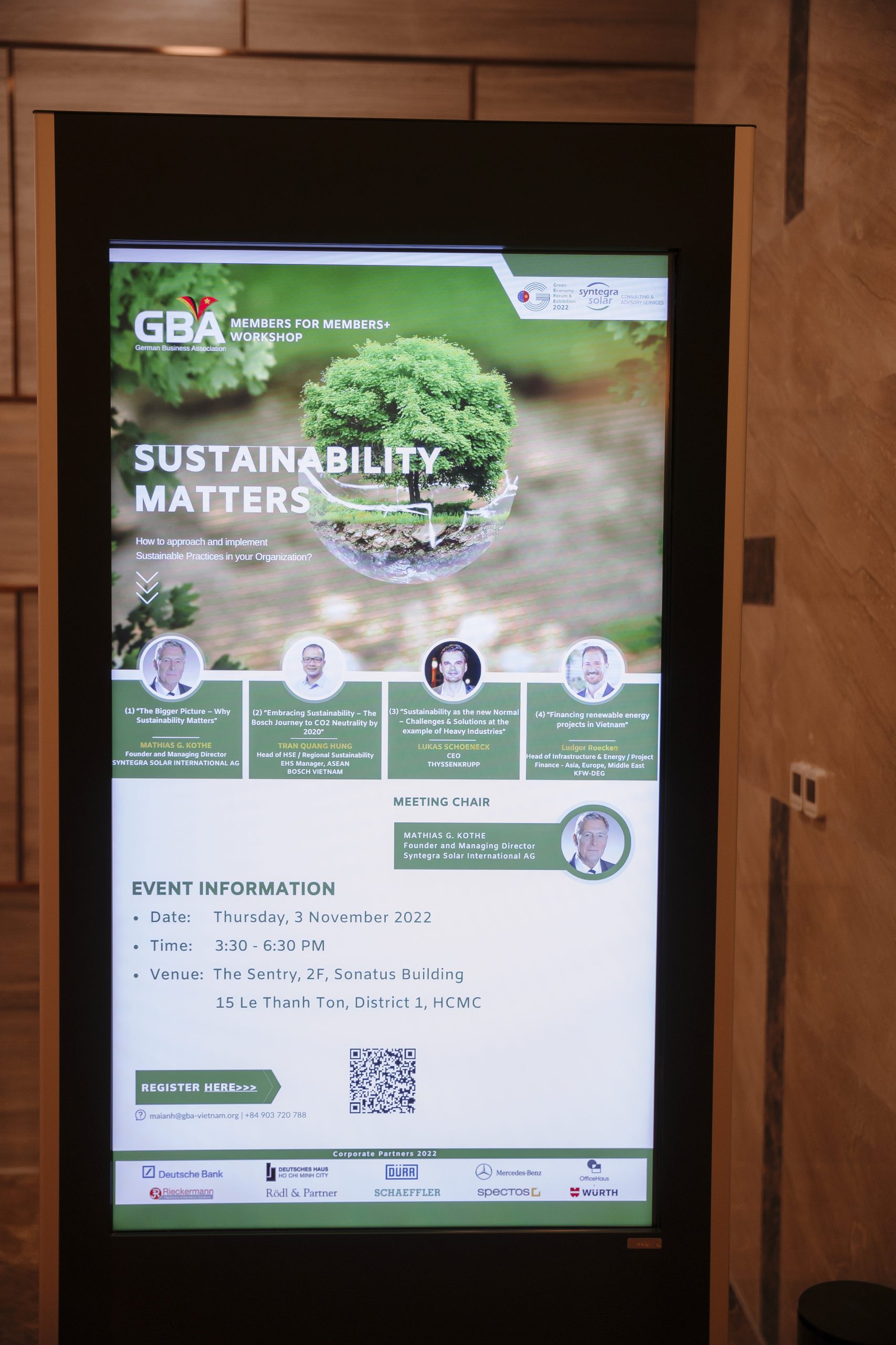 HCMC, 3 November 2022 – The ‘GBA Members for Members+’ participative workshop attracted around 40 members at the modern Sonatus Building. “Sustainability Matters” – It’s a Hot Topics of great Interest to the Business Communities, especially to Industry, and to Politics, GBA has successfully addressed “Sustainability” in an innovative, focused, new format.