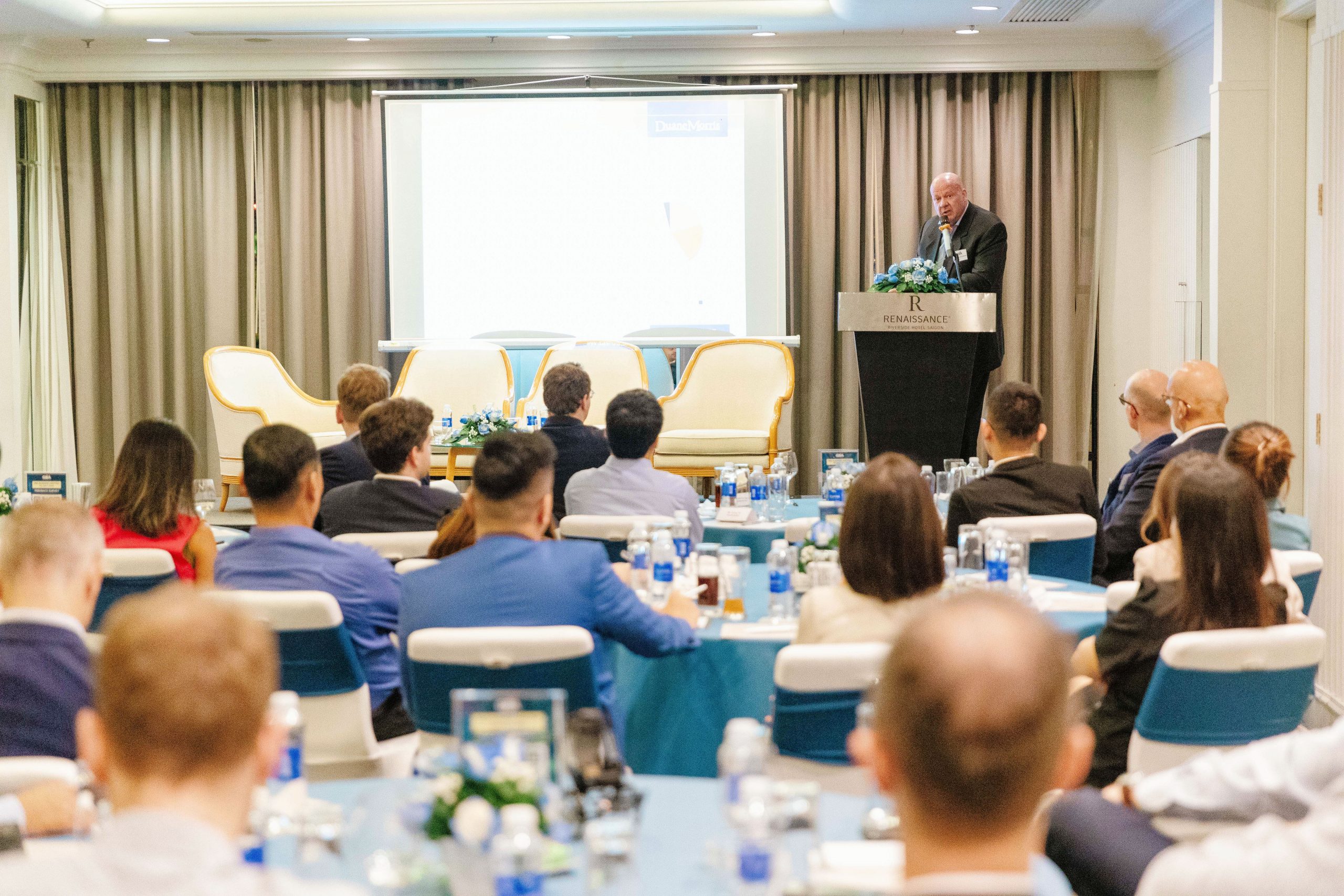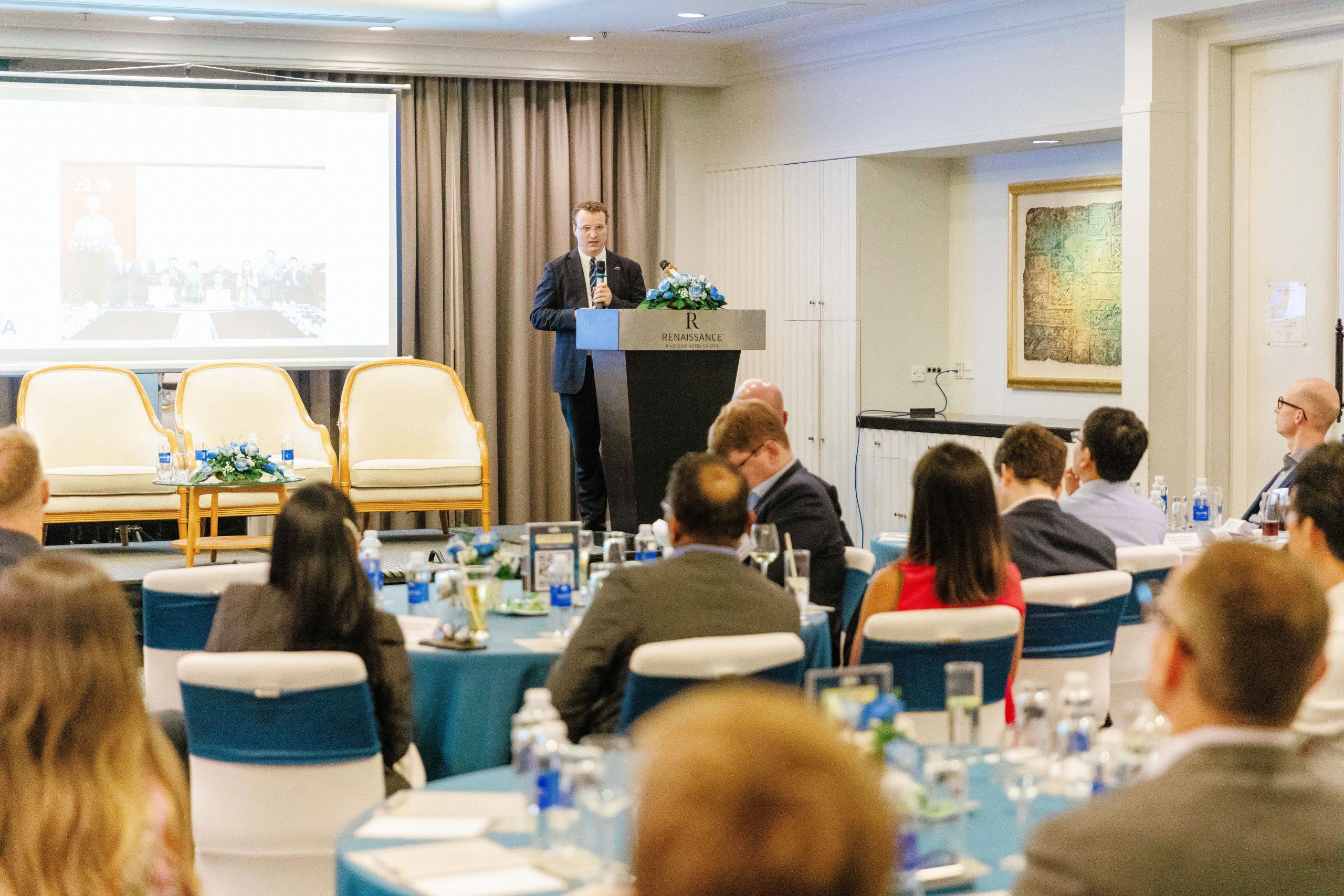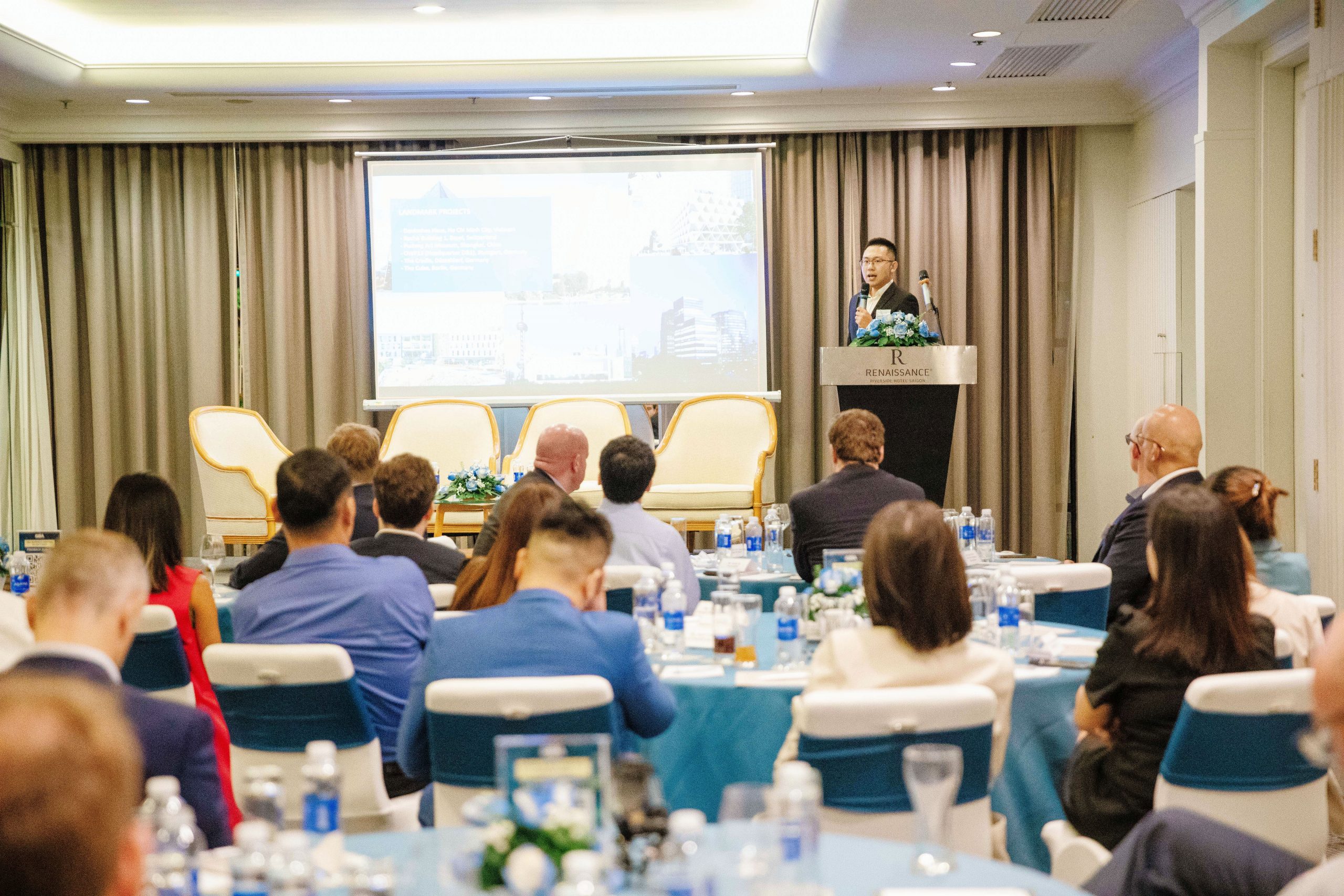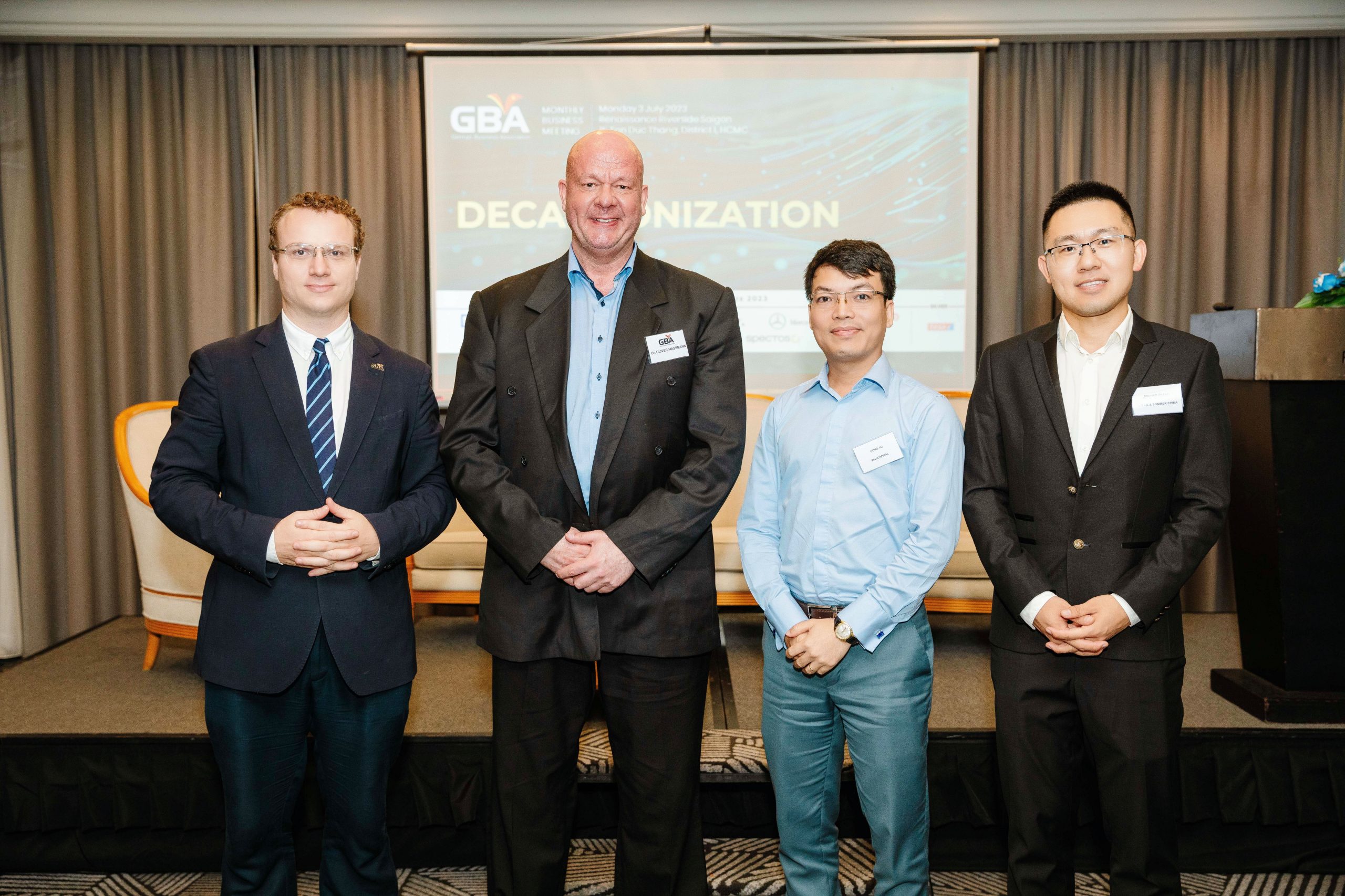 Ho Chi Minh City, 3 July 2023 – The GBA Monthly Business Meeting in July was a success, with approximately 50 participants joining in person and virtually at Renaissance Riverside Saigon. The meeting was chaired by Mr. Martin Koerner, Group Commercial Director of the Anam Group/ GBA Vice-Chairman, along with three keynote speakers: Dr. Oliver Massman from Duane Morris Vietnam LLC, Mr. Cong Vu from VinaCapital, and Mr. Shuhao Zhang from Drees & Sommer China.