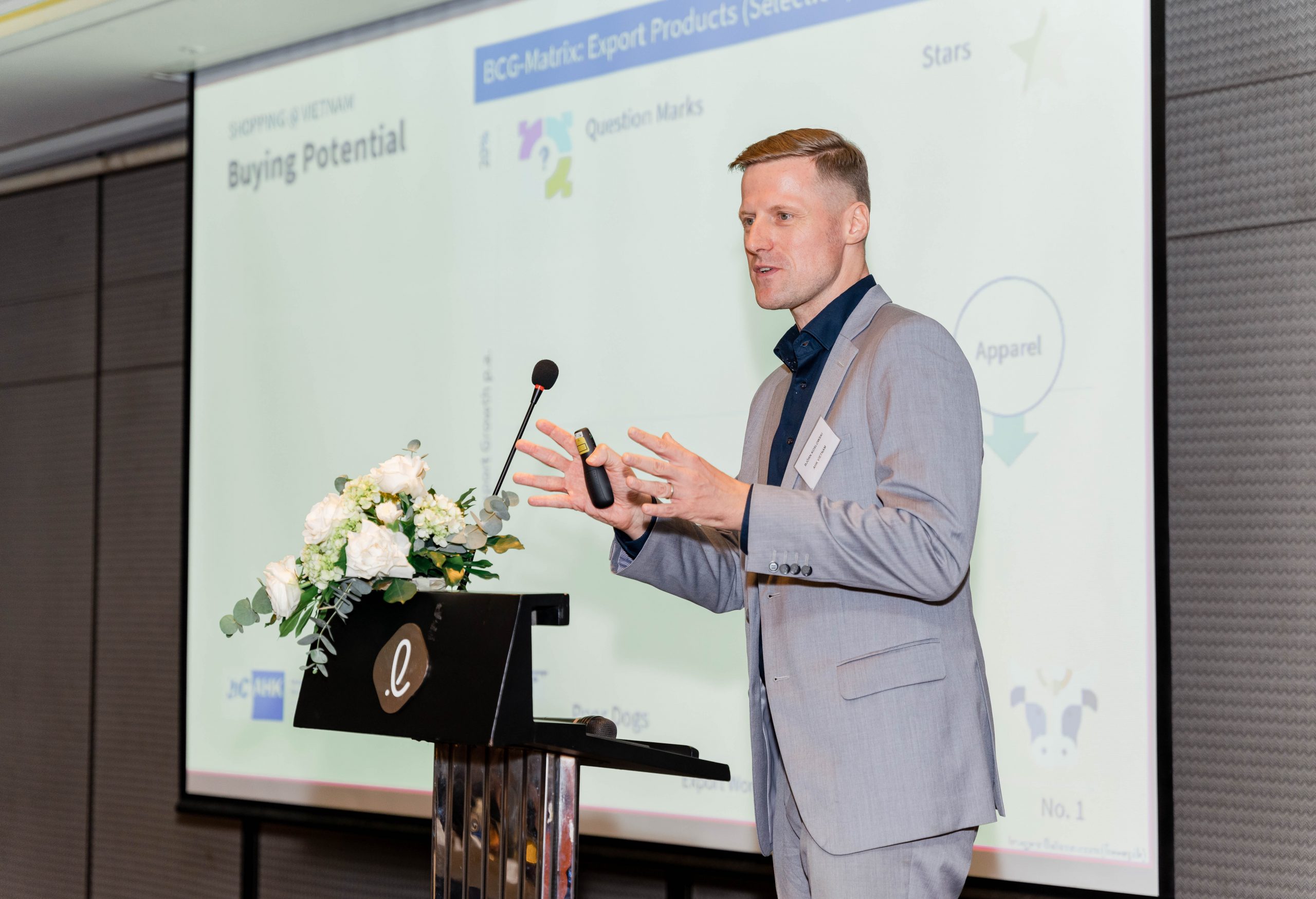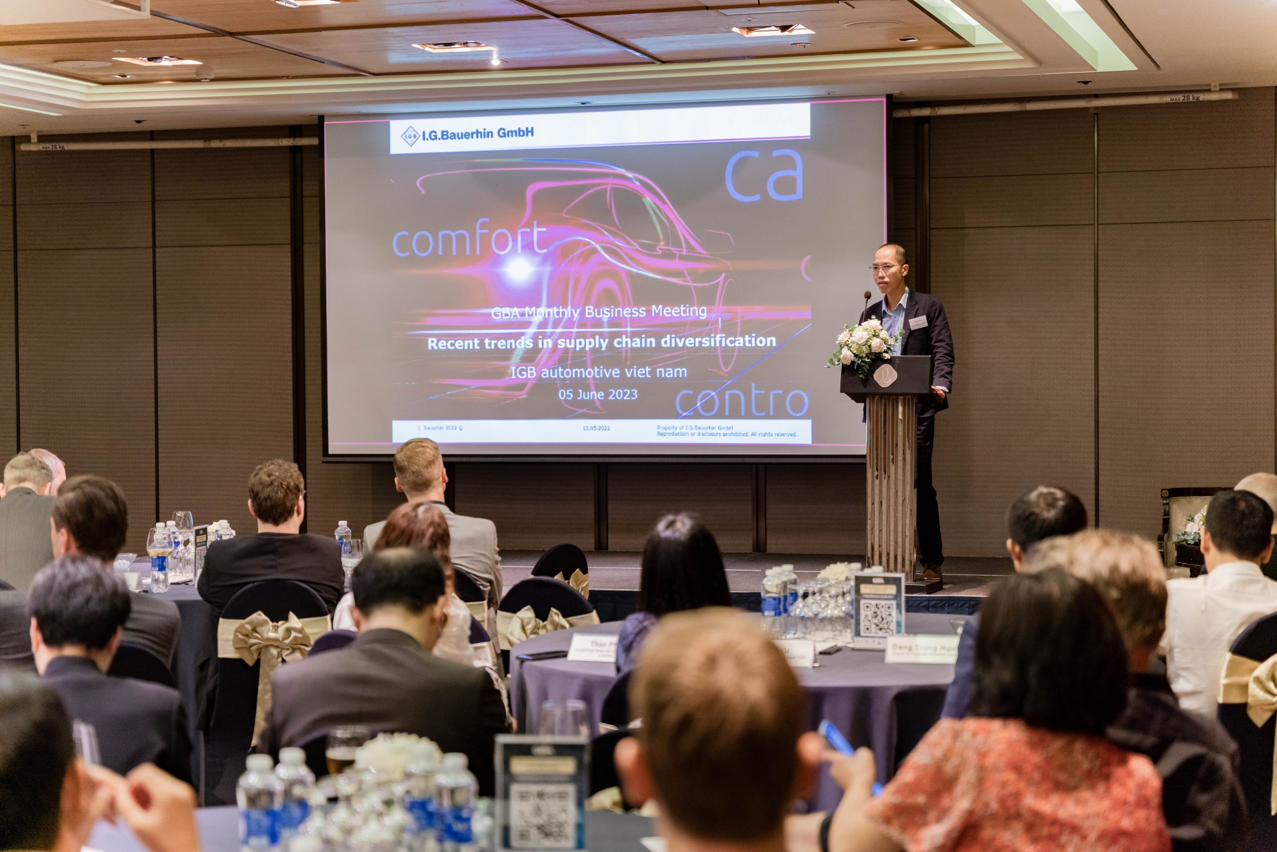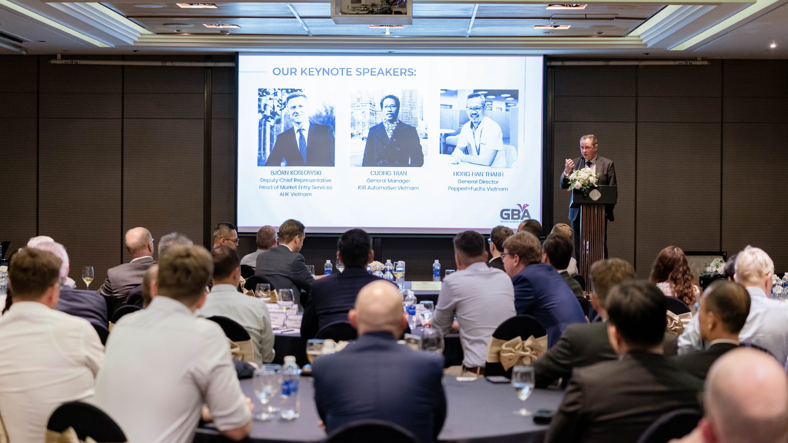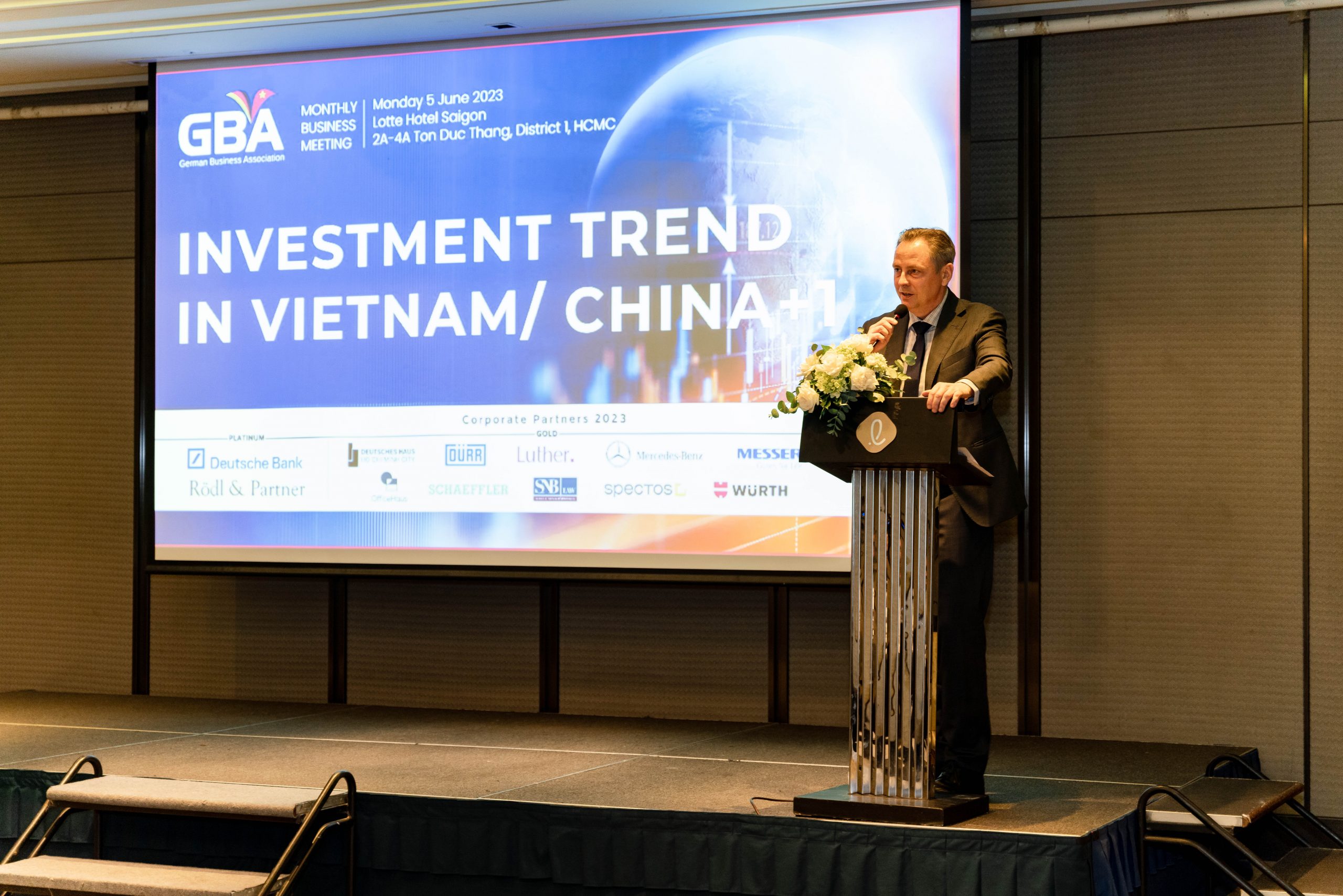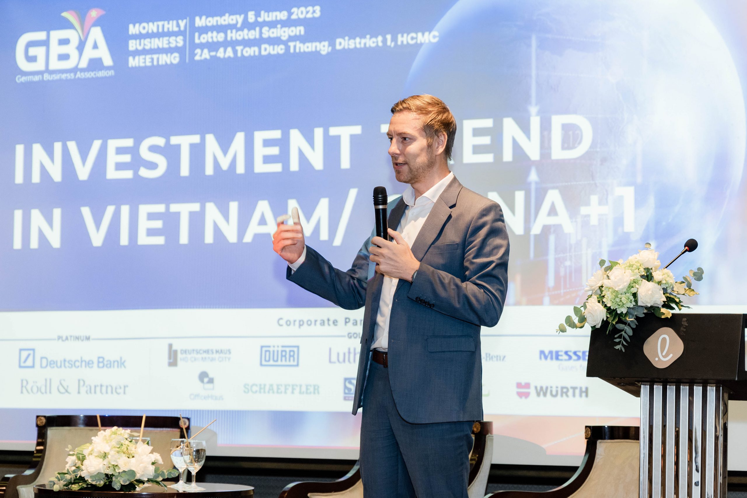 Ho Chi Minh City, 5 June 2023 – The GBA Monthly Business Meeting in June took place successfully at Lotte Hotel Saigon with 90 participants in person and virtually. Mr. Marko Walde, Chief Representative of AHK Vietnam/ GBA Vice-Chairman chaired the meeting together with three keynote speakers: Mr. Björn Koslowski – Deputy Chief Representative/ Head of Market Entry Services of AHK Vietnam, Mr. Cuong Tran – General Manager of IGB Automotive Vietnam and Mr. Hong Han Thanh – General Director of Pepperl+Fuchs Vietnam