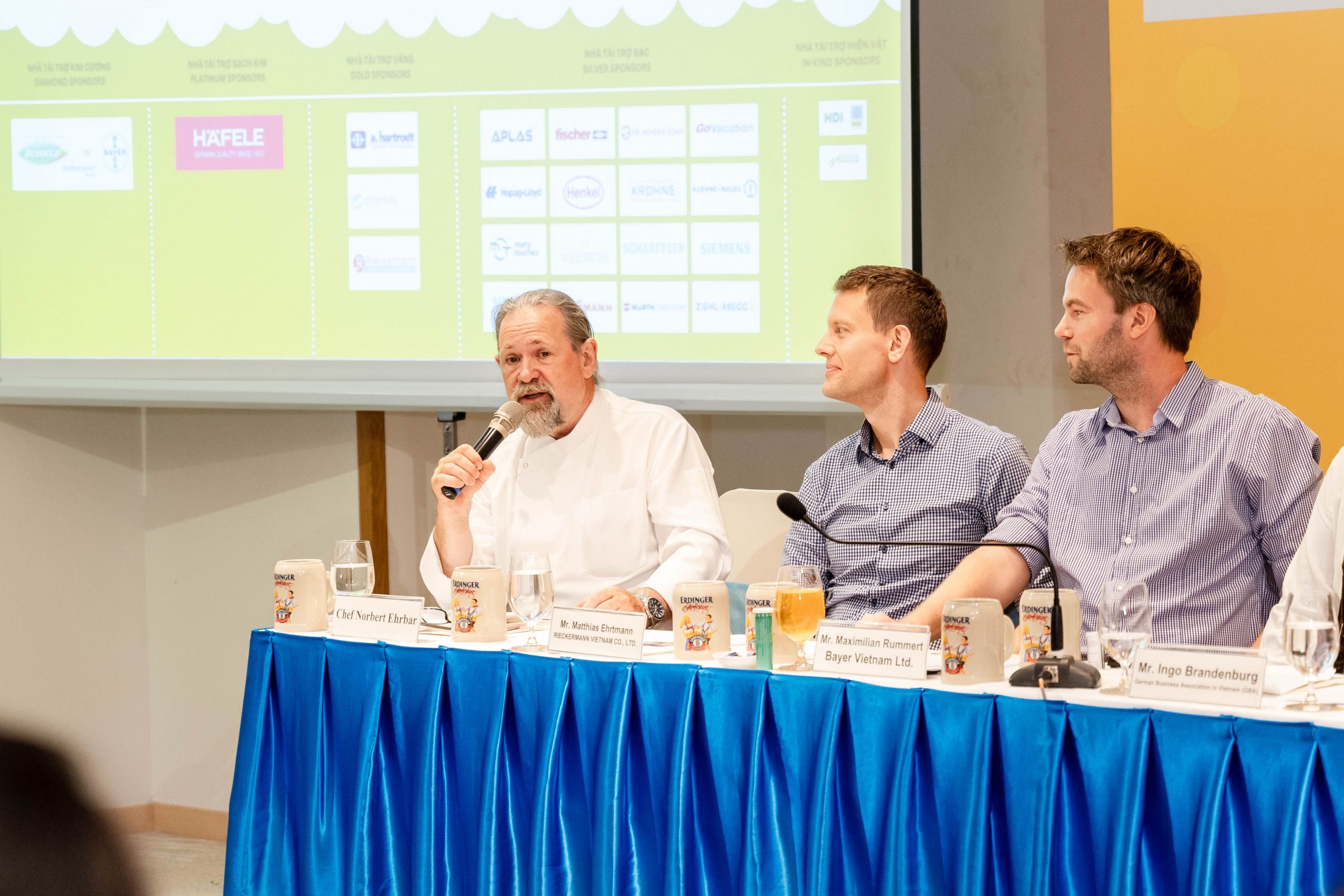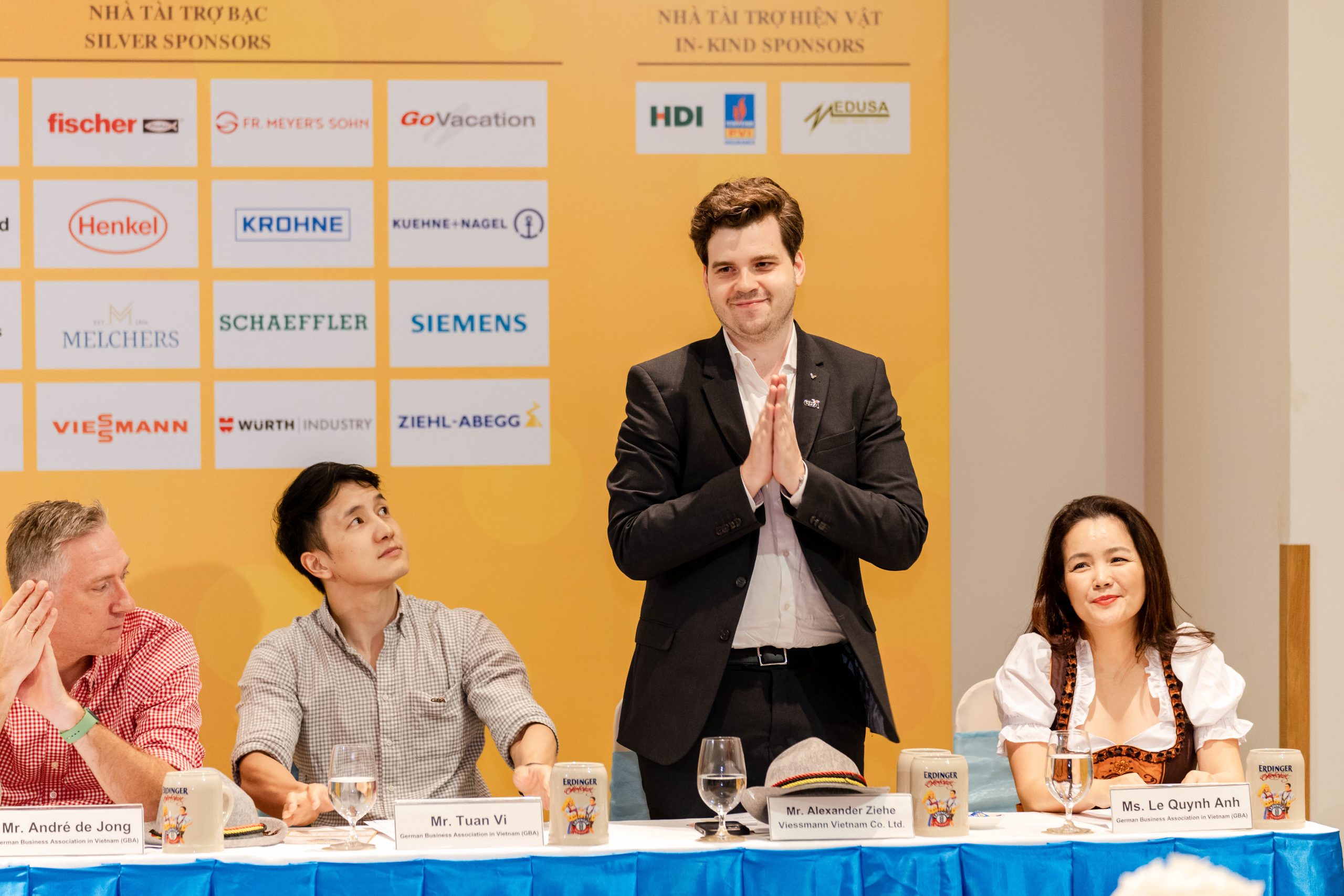 Silver sponsors: Alliance Packing Plastic (APLAS), Melchers Vietnam, Fischer Production, Fr. Meyer’s Sohn Vietnam, Go Vacation, Hapag-Lloyd Vietnam, Henkel Adhesive Technologies Vietnam, Hoiana Resort & Golf, Krohne Vietnam, Kuehne+Nagel Vietnam, Many Touches, Schaeffler Vietnam, Siemens Ltd., Viessmann Vietnam, Würth Industry Service Vietnam, Ziehl-Abegg Vietnam.