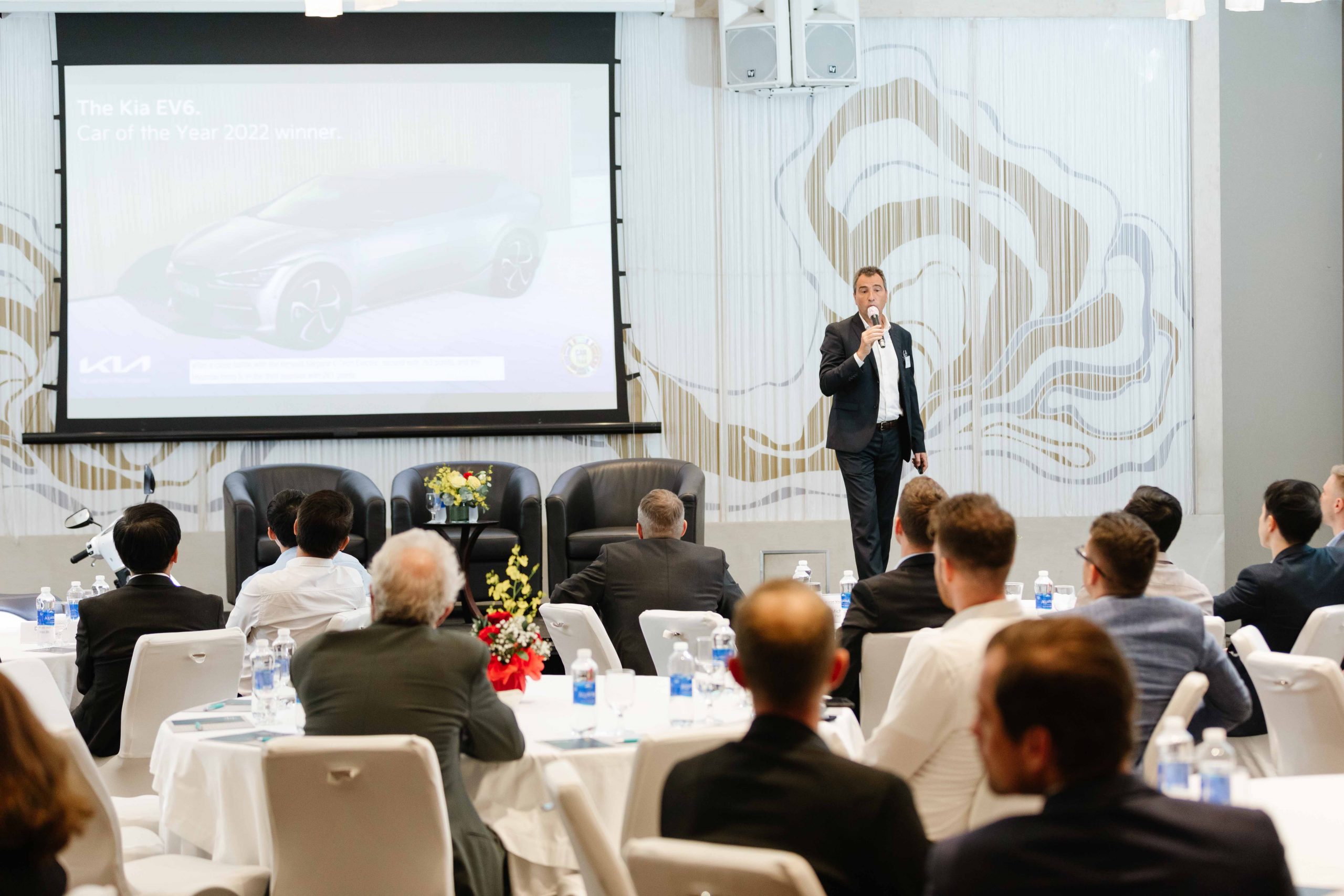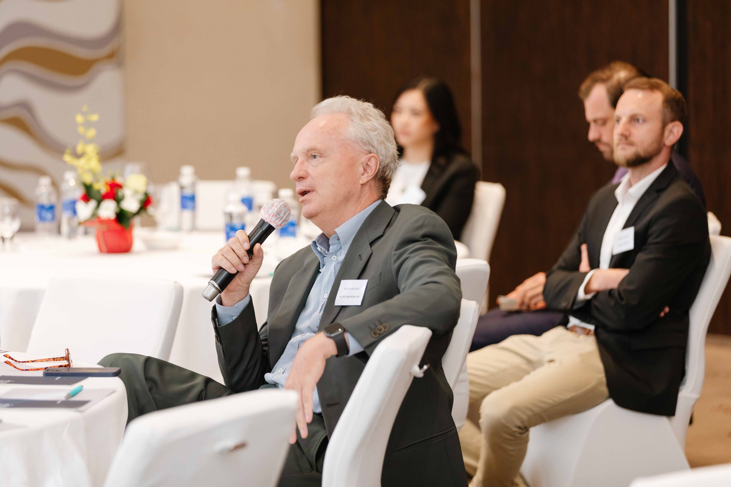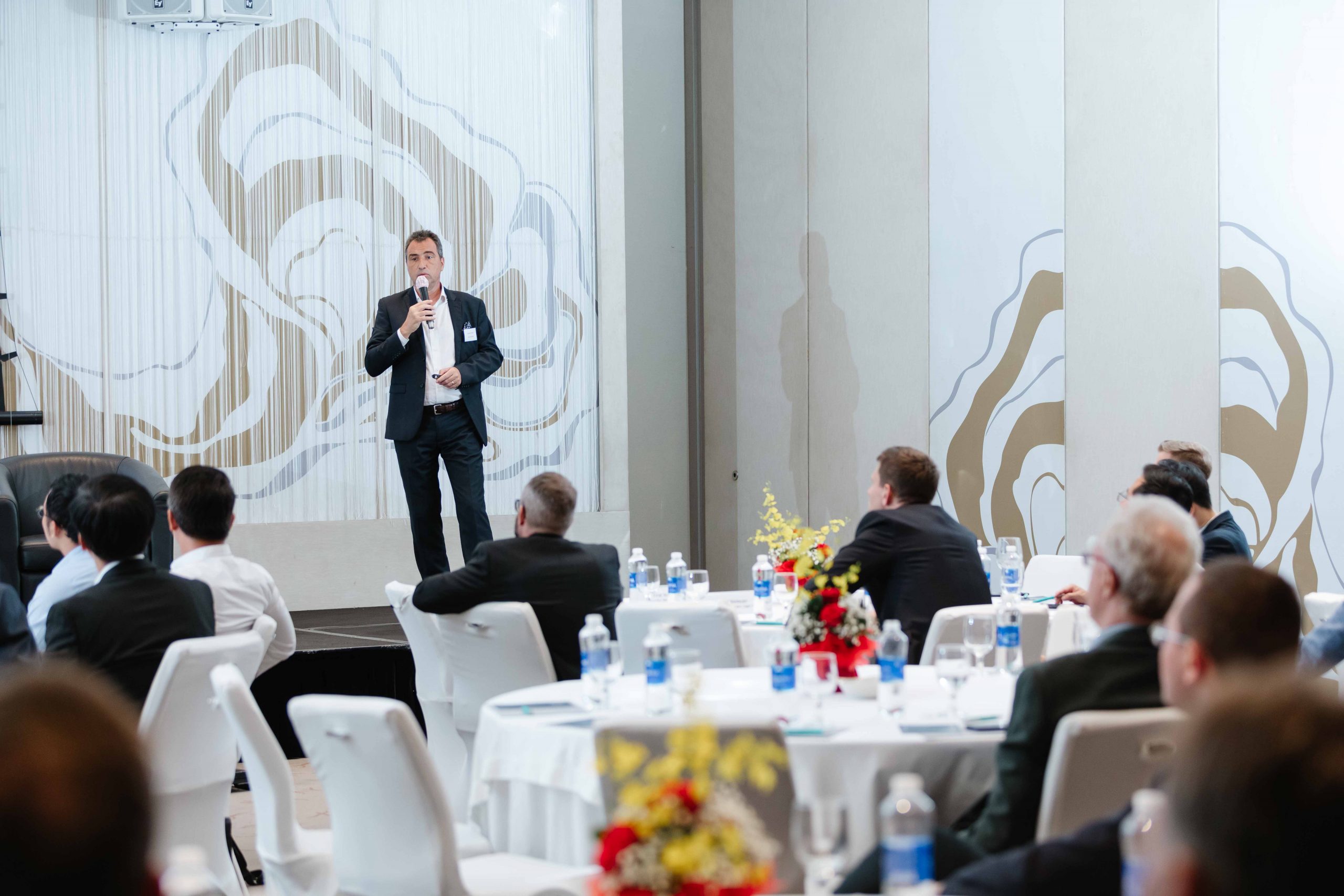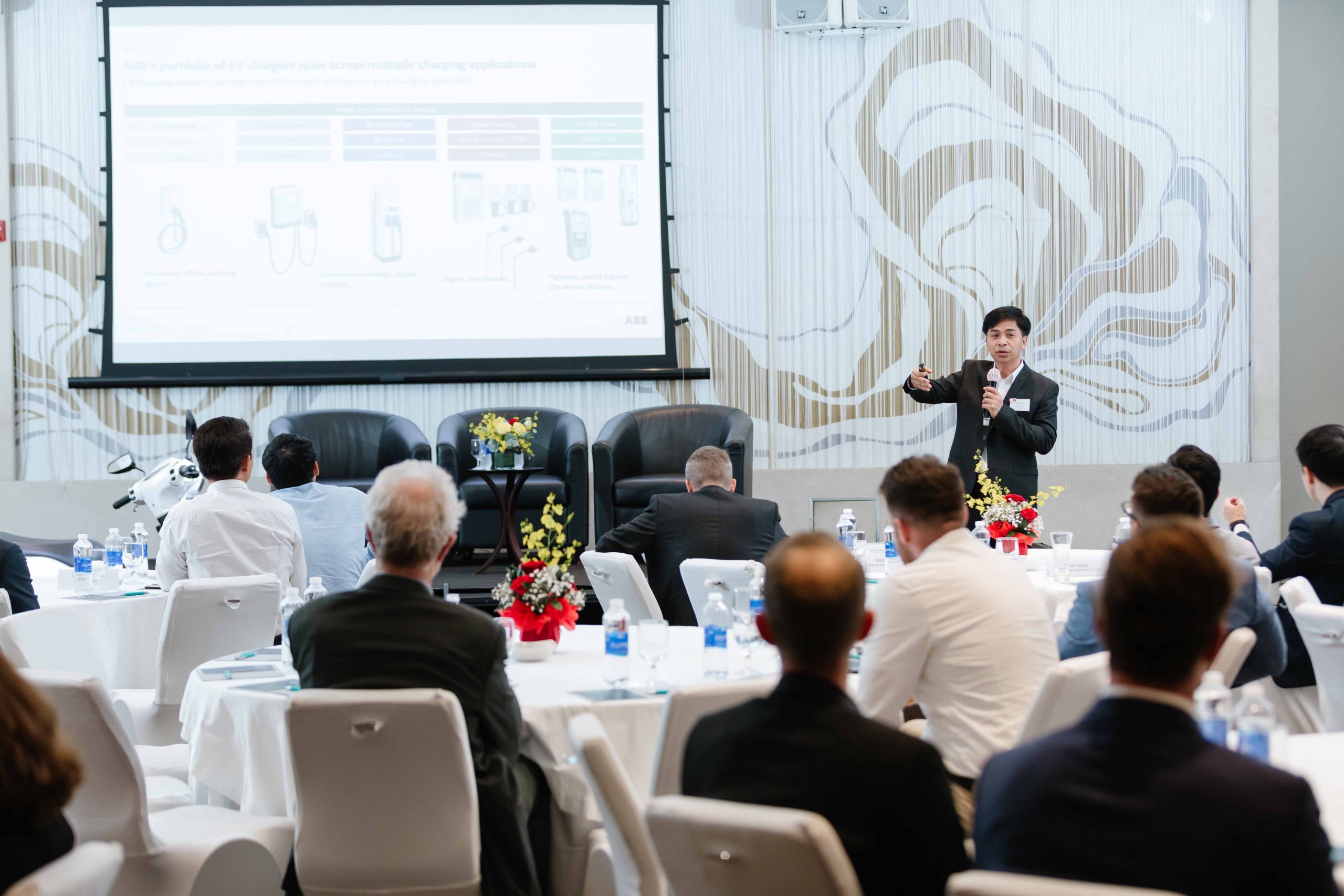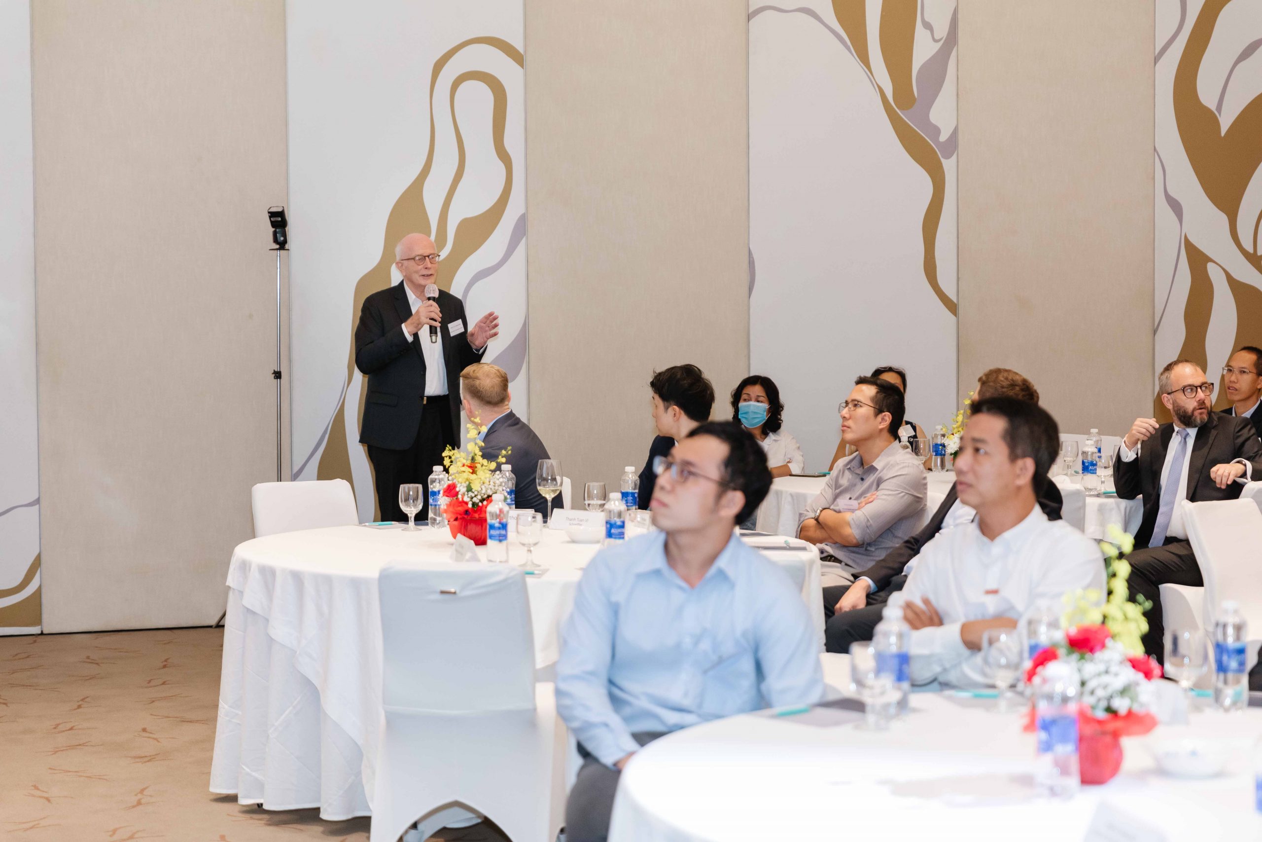 The meeting had the participation of two reputable guest speakers Mr. Laurent Genet, General Director at Audi Vietnam and Chairman of the Automotive Sector Committee at EuroCham Vietnam and Mr. Doan Van Hien, Vice-President at ABB Vietnam. Mr. Genet provided 70 on-site and virtual audiences an overview of the Automotive Industry with the latest electric vehicle (EV) models in the market as well as the critical need of supportive policies to make the electrification successful in Vietnam. Mr. Hien took the audience to a tour through the EV charging technology landscape with its all challenges and opportunities in Vietnam.