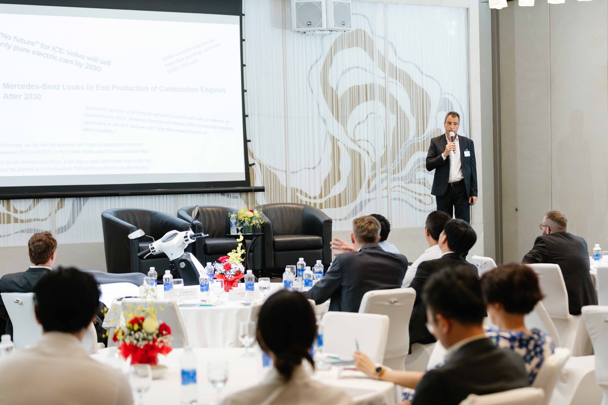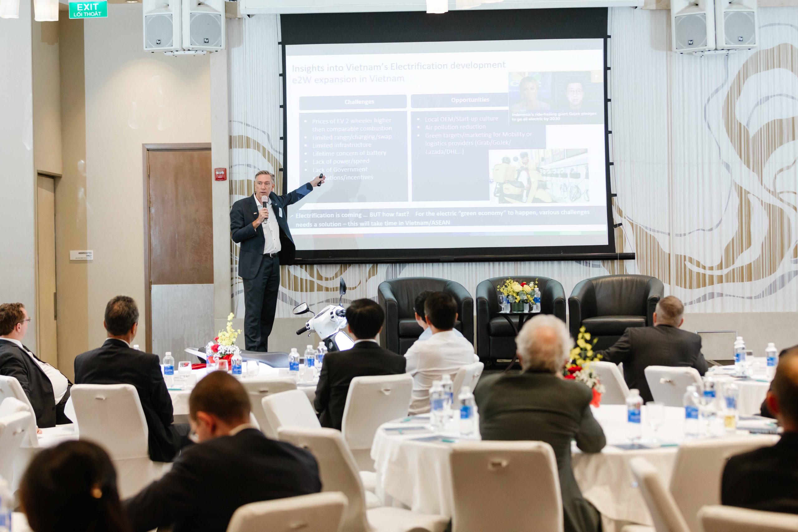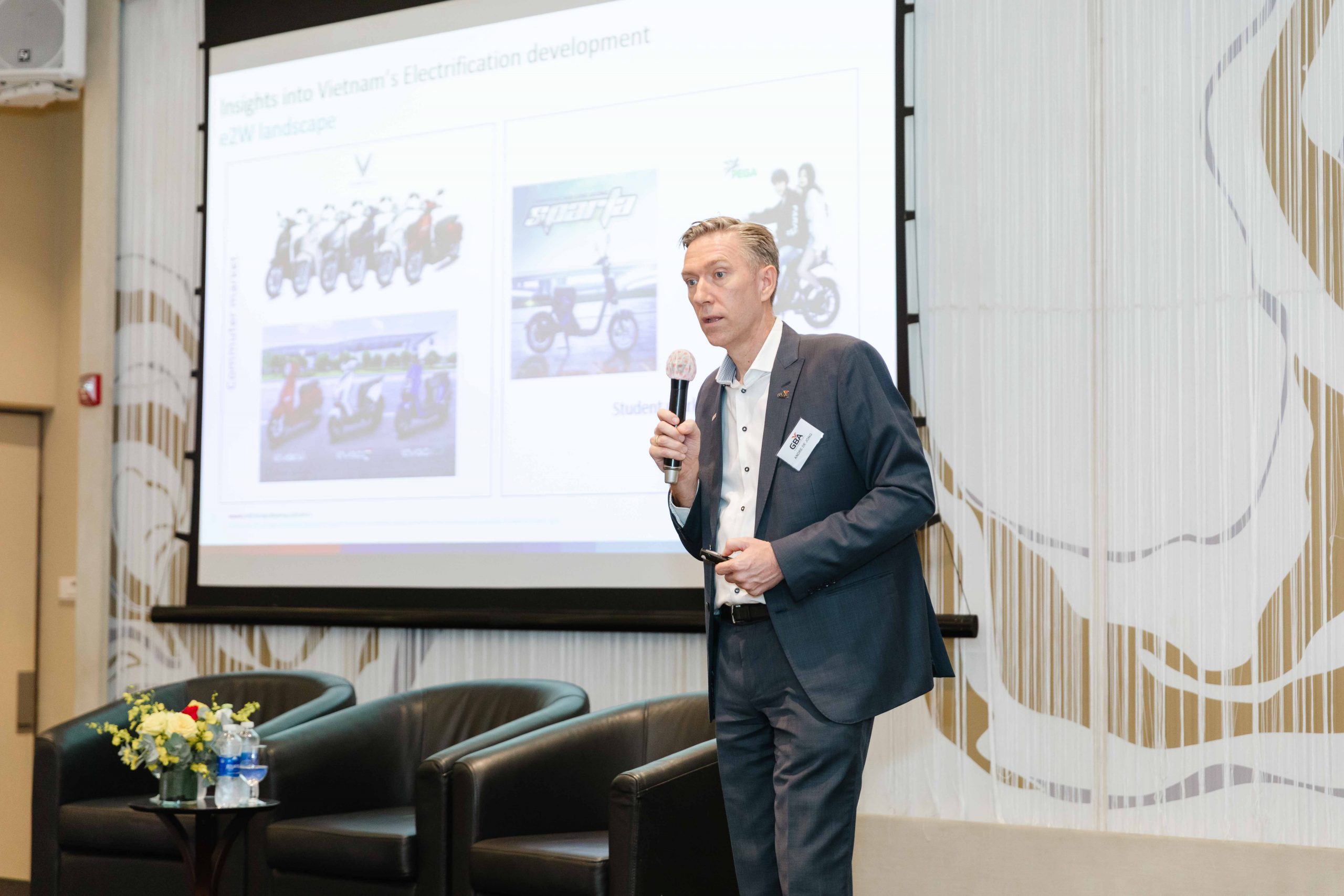Mr. Andre de Jong, 2-wheeler responsible at Bosch in ASEAN, GBA Board Member hosted the event and held a presentation about the status of electric two-wheelers in Vietnam and ASEAN. ‘Vietnam is currently the biggest electric 2-wheeler vehicle market in ASEAN’ stated in his presentation showed the great potential of this area and reflects effort of Vietnamese government and people in the transition towards a more sustainable development and fulfilling the nation’s commitment of emission reduction.
