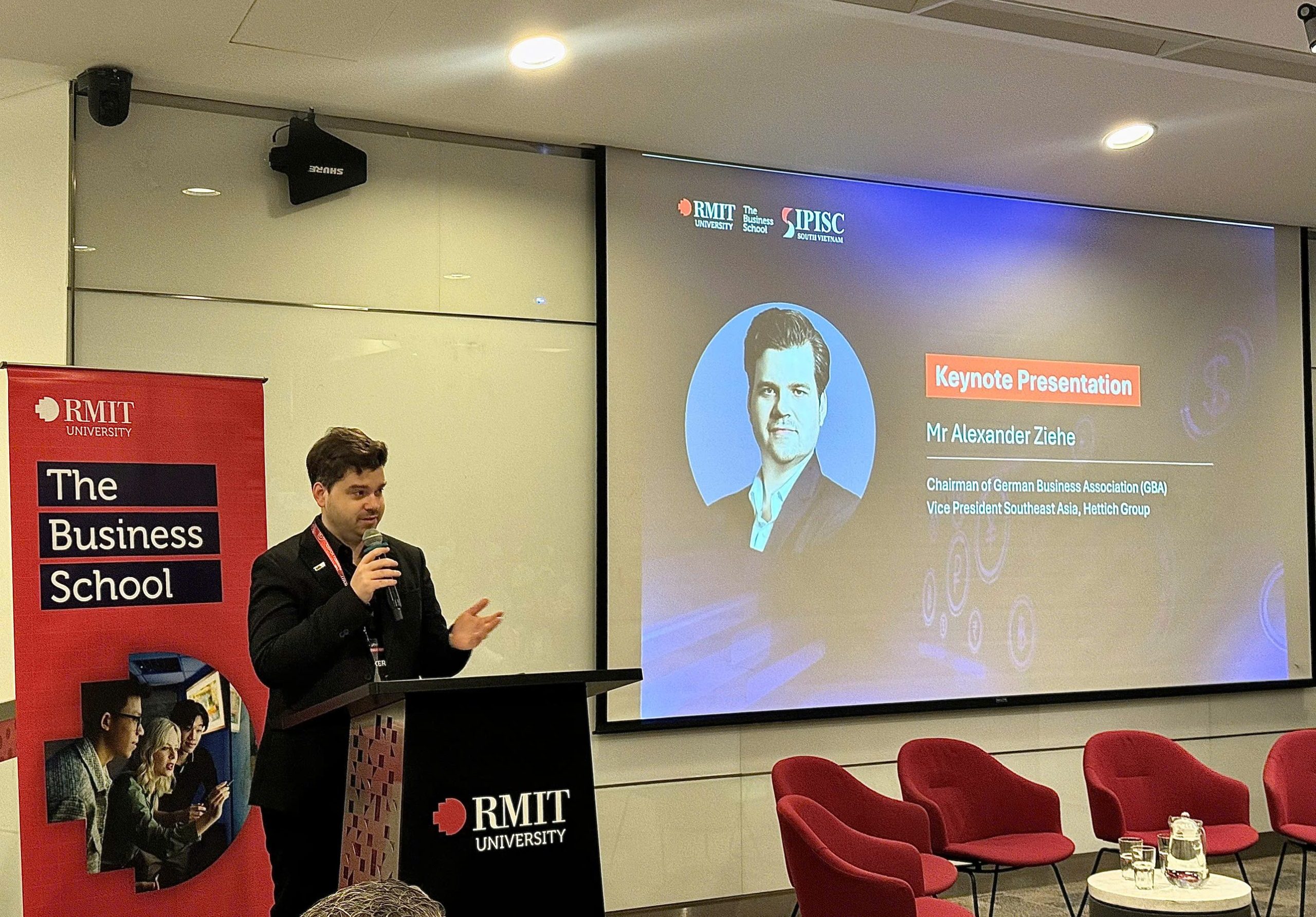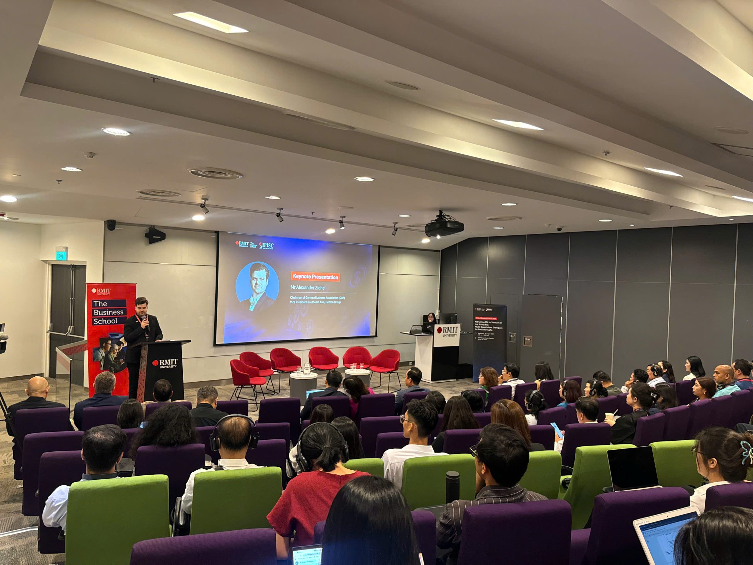 RMIT Vietnam, Ho Chi Minh City – 20 August 2025, the German Business Association (GBA) was honored to participate in the Global Business Forum 2025, co-hosted by RMIT Vietnam and the Southern Investment Promotion, Information & Support Center (FIA – Ministry of Finance).