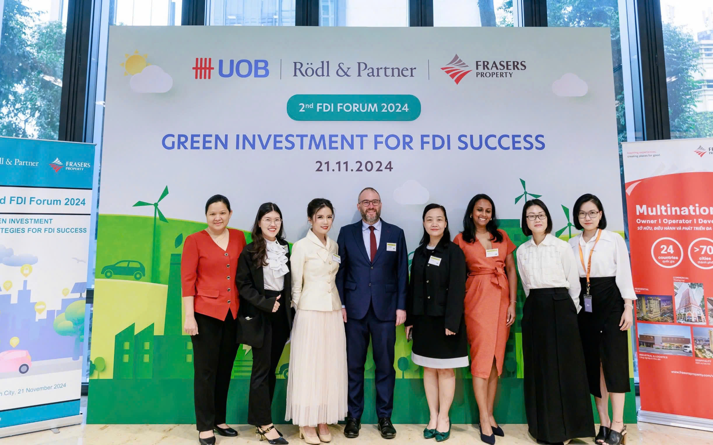 On November 21, Rödl & Partner Vietnam hosted the 2nd FDI Forum titled “Green Investment Strategies for FDI Success”, a hybrid event with 100 participants at the prestigious Deutsches Haus in Ho Chi Minh City and 40 online attendees from across Asia and Europe. The event was organized in partnership with Frasers Property Vietnam and UOB Vietnam, underscoring a shared commitment to advancing sustainable investment practices and fostering Foreign Direct Investment (FDI) in Vietnam.