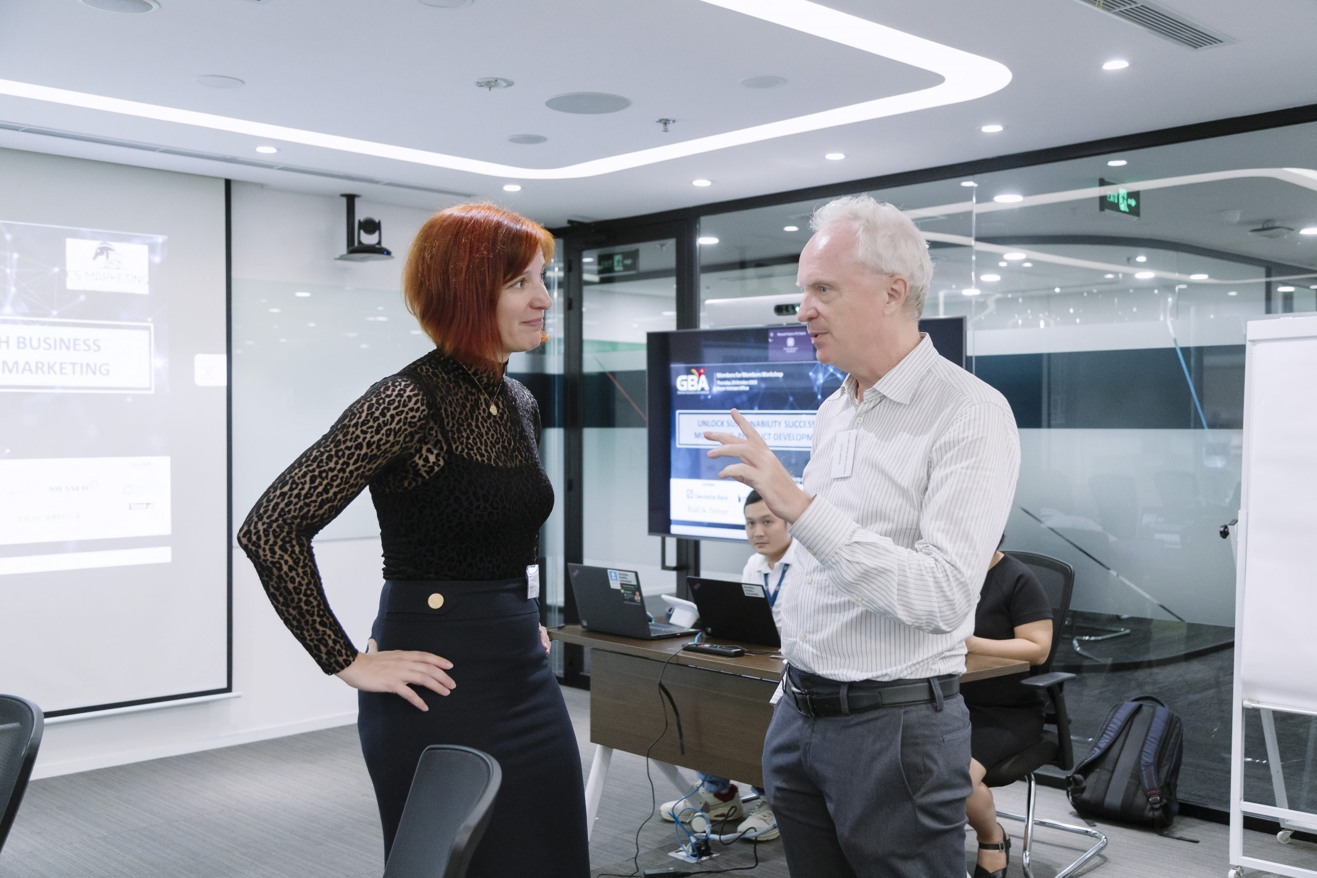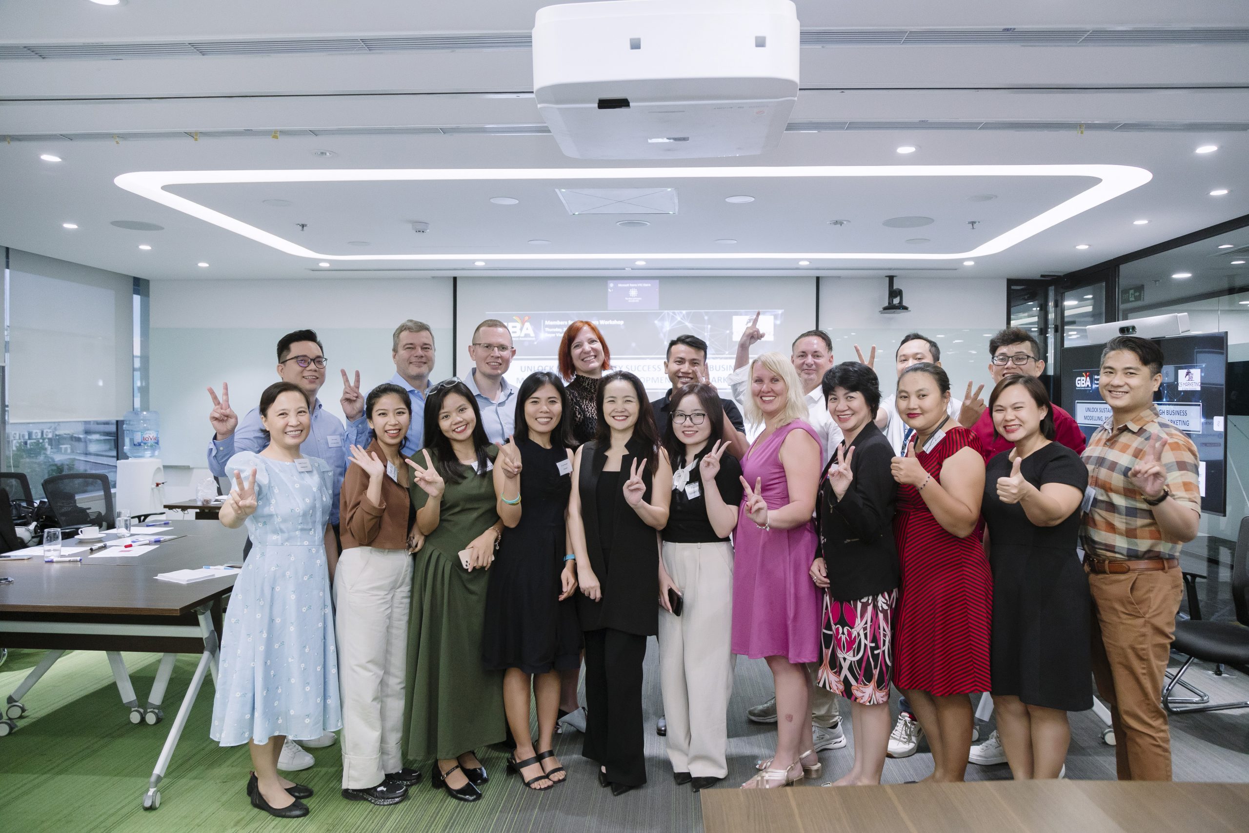 HCMC, 26 October – The workshop “Unlock Sustainability Success through Business Modelling, Product Development, and Marketing” organized by GBA attracted 20 members from a diverse range of business backgrounds at the modern Bayer Vietnam’s office space. The three speakers shared their experience, best practices and concepts for implementing sustainability successfully within businesses of different sizes. During lively discussions, the participants came up with their very own sustainability business models, products and storylines while keeping focus on truthful and relevant communication for different stakeholders.